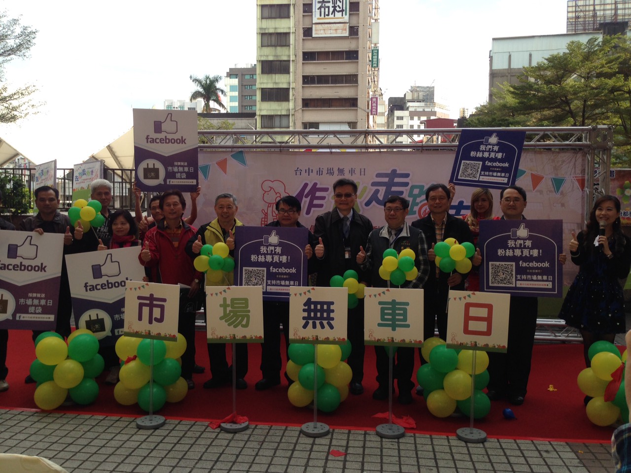 為宣導「市場無車」概念,今天參與的民眾只要至「臺中市政府經濟發展局」官方粉絲團按讚,並於FB圖文按讚+分享「我支持臺中市場無車日!作伙走路去~」,即可獲得市場無車日提袋,限量1,000個,送完為止。
