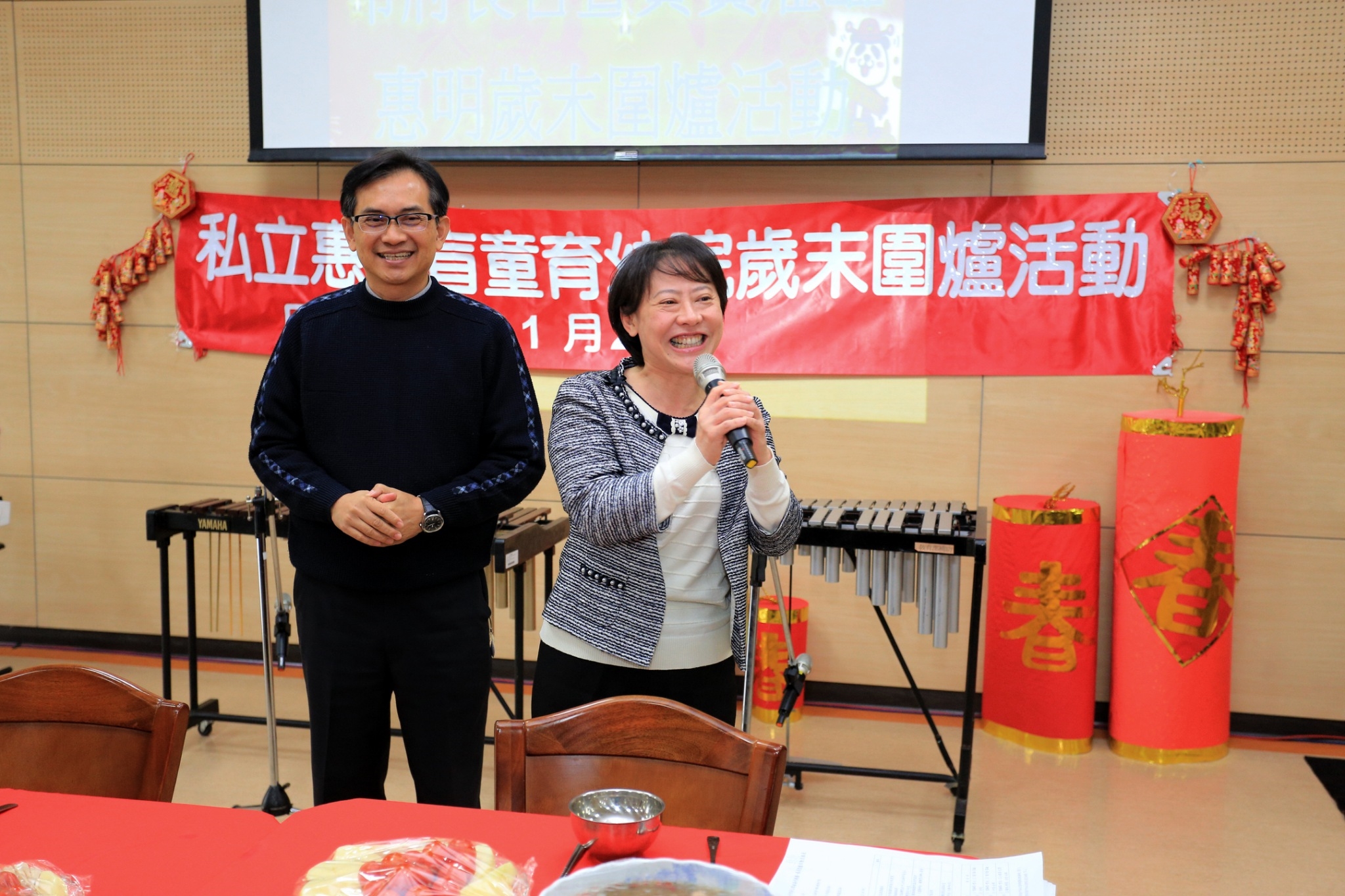 由財團法人惠明盲人福利會附設台中巿私立惠明盲童育幼院主辦的歲末圍爐活動今日溫馨展開,包括市長夫人廖婉如、社會局副局長陳仲良、大雅區長李順彬、惠明盲人福利會執行長賴弘毅、惠明育幼院主任李慧筠及惠明教養院主任周鳳雪及等人均到場同樂,院生們演奏電鋼琴、電子鼓及小提琴等精彩節目,氣氛熱鬧。