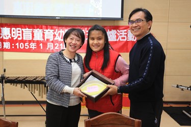 惠明盲人福利會執行長賴弘毅表示,惠明盲校致力協助家庭窮困及視障孩子,擔負教養工作,感謝市長林佳龍及夫人廖婉如的長期關心,也謝謝各界對學校的各項支持。