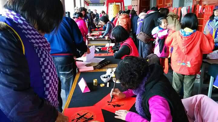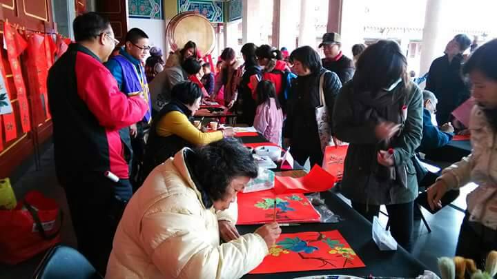 今日氣溫雖低又下雨,但仍不減市民熱情,吸引逾600人參加,許多市民拿到由名家剛寫好的春聯顯得相當開心,互道猴年吉祥如意,氣氛熱鬧。