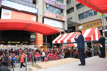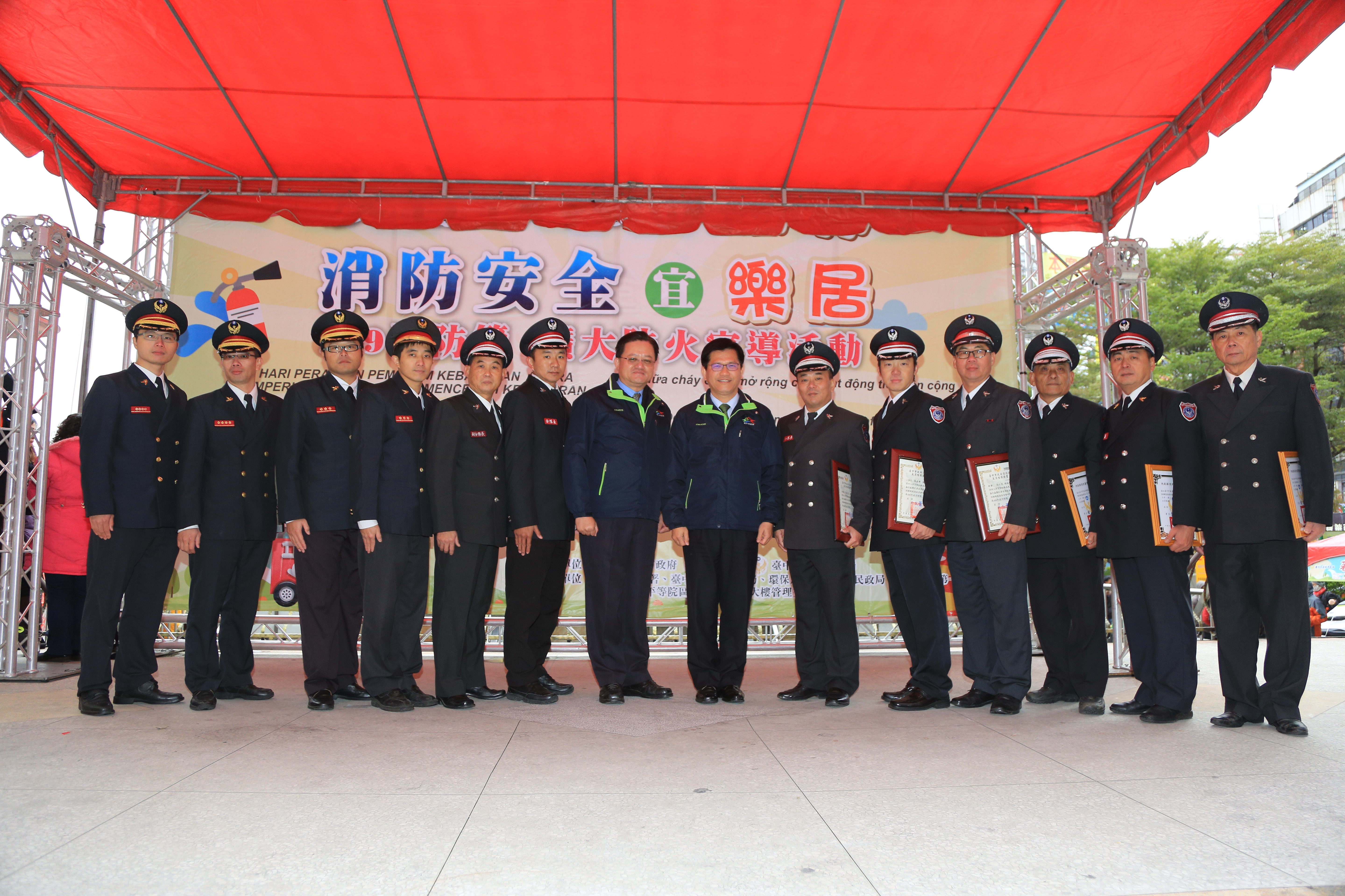 消防局今(24)日在東協廣場舉辦「119消防節暨防火宣導大型活動」,由林市長頒獎表揚績優消防及義消人員,肯定他們的貢獻,並摸彩抽出幸運得主,現場也有消防裝備器材展示,雖天氣寒冷,仍吸引許多民眾參與活動,人潮絡繹不絕。市議員陳成添、消防局長蕭煥章、中區區長黃至民皆出席共襄盛舉。