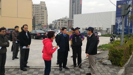 為推行無障礙人本步道通行環境,建設局長黃玉霖日前會同南屯區長程泰源前往視察五權西路二段自永春東七路至環中路,重劃路段的無障礙斜坡道狀況。
