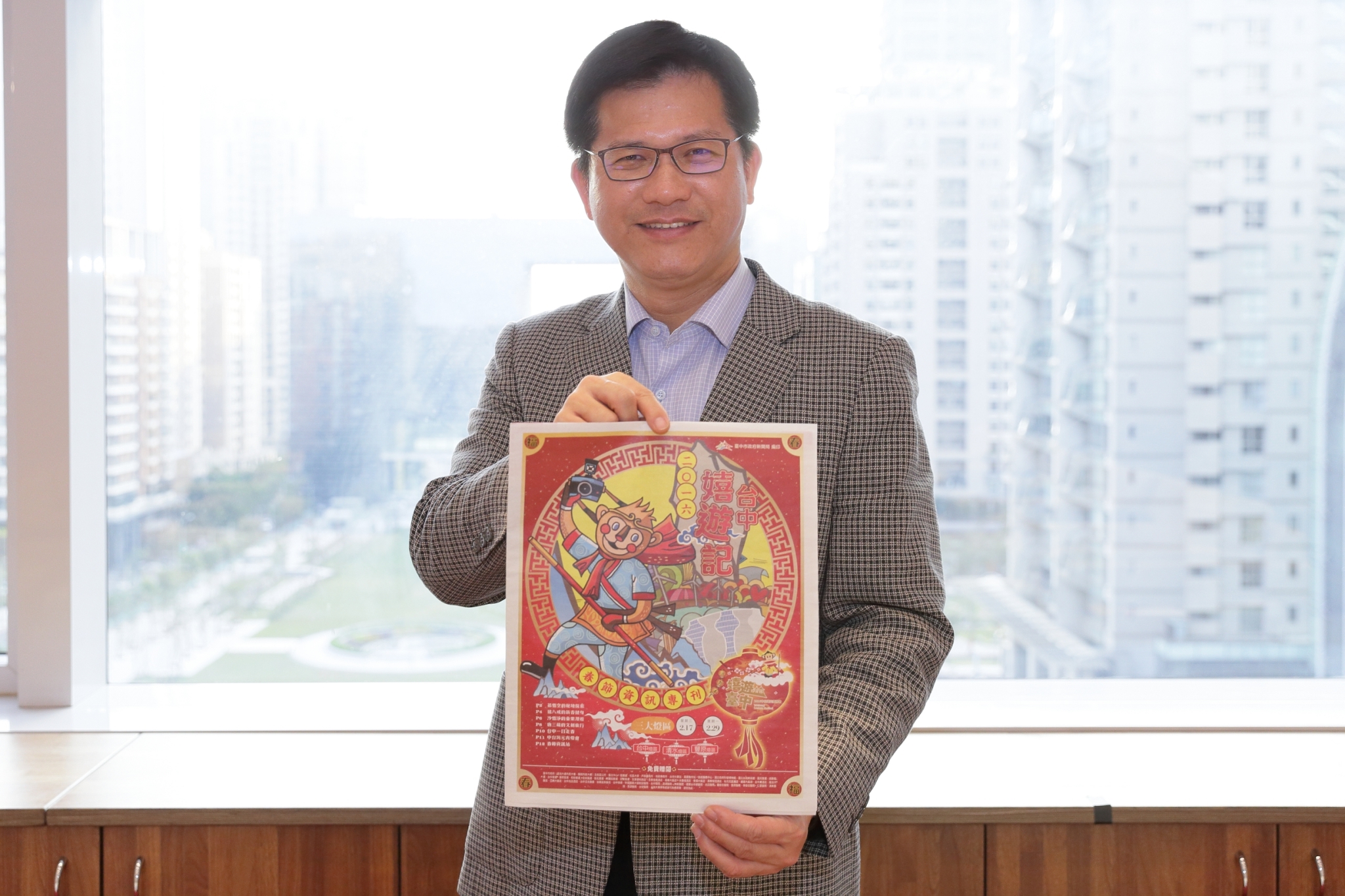 新聞局表示,今年春節資訊專刊以「台中嬉遊記」為主題,由西遊記裡的人物帶領大家嬉遊台中,包括「孫悟空的秘境探索」享受大自然的悠閒生活、「豬八戒的新春健身」走訪登山步道、「沙悟淨的童樂漫遊」以科博館30周年館慶為主題,介紹科博館及草悟道周邊各式特色文創店家,而「唐三藏的文創旅行」,則以光復新村為主題,帶領大家造訪新興文創基地。