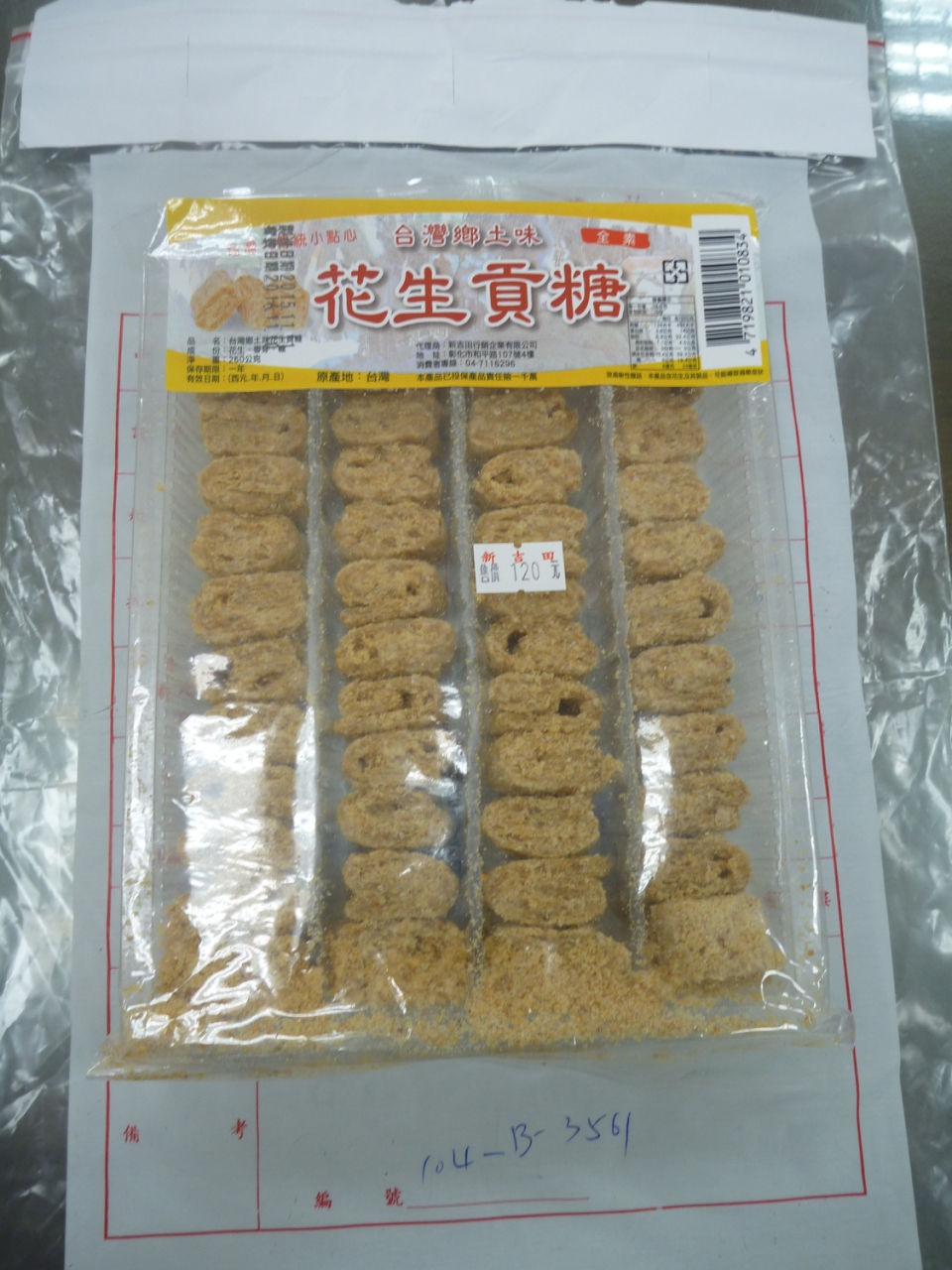 其中,在后里區國道泰安休息站北站萊爾富便利商店抽驗的「花生貢糖」檢出總黃麴毒素34.2ppb(標準:15ppb以下);據萊爾富超商中區業務主任表示,該品項產品僅為供應國道休息站販售用,在接獲衛生局通知檢出超標後,已立即將現有產品81盒(260g/盒)下架,而衛生局並同時移源頭廠商彰化縣衛生局後續調查。