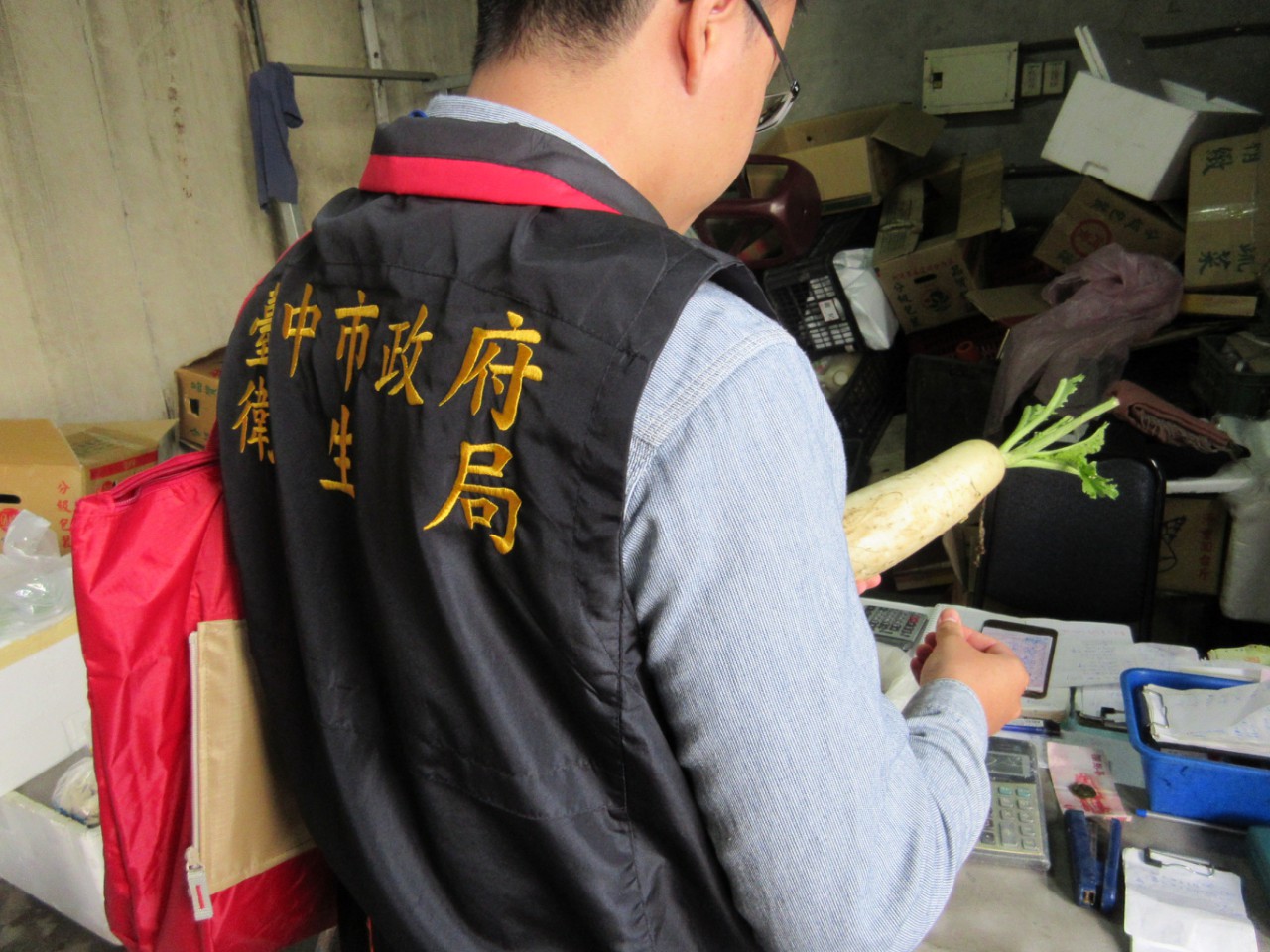 衛生局進一步指出,另外6件超標產品包括大雅區三祝行抽驗「金針」檢出漂白劑二氧化硫5.29g/kg(標準:4.0g/kg以下)、豐原區的百春果菜行、福來行及東區榮川蔬菜行的「白蘿蔔」分別檢出芬普尼(Fipronil)0.006ppm、0.002ppm及0.004ppm(標準:0.001ppm以下)、西屯區施家班「四季豆」檢出芬普尼(Fipronil)0.024ppm(標準:0.001ppm以下)、東區大輪農產品有限公司「白蘿蔔」檢出芬普尼(Fipronil)0.084ppm(標準:0.001ppm以下)及賽滅寧(Cypermethrin)0.08ppm(標準:0.01ppm以下),該6件超標產品已移至外縣市源頭廠商所轄的衛生局調查處理。