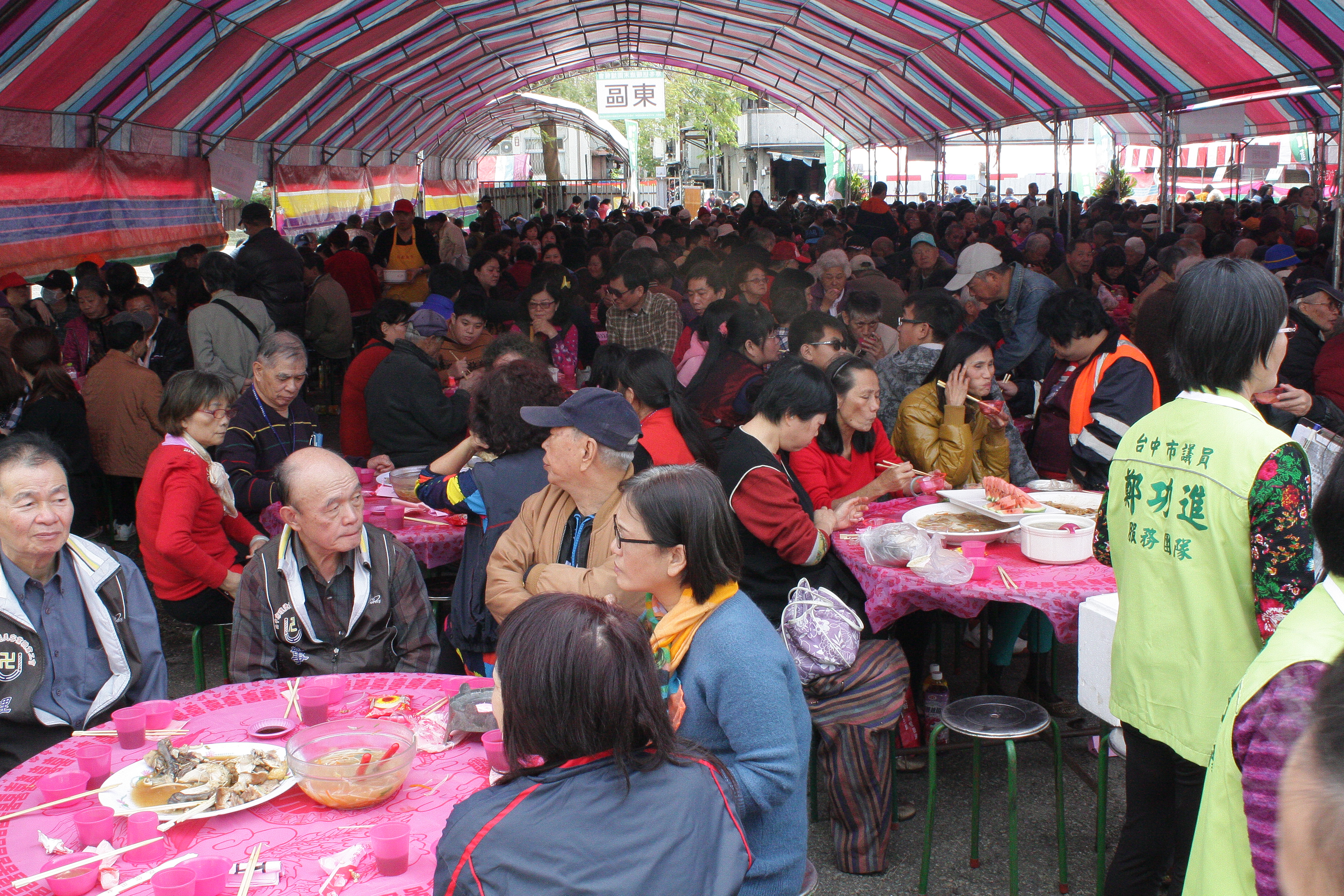 農曆新年即將到來,為幫助弱勢過好年,市議員鄭功進連續第2年舉辦寒冬送暖餐會,今(1)日席開130桌,邀請弱勢族群圍爐聚餐;市長林佳龍也前往共襄盛舉,並發送紅包給生活困苦的民眾,期盼讓他們感受社會關懷,共享過年的溫馨氣氛。