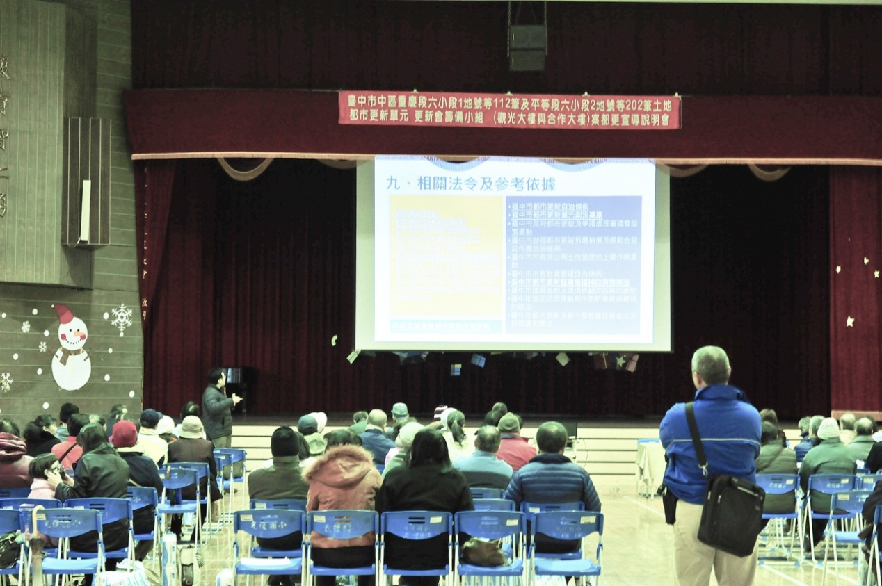 此都市更新會籌備小組已於1月24日及31日召開2場都市更新宣導說明會,並邀請市府都發局協助向居民說明都市更新相關法規及流程,現場出席民眾相當踴躍。