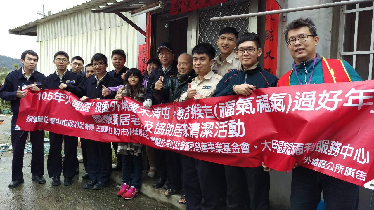 為讓長輩開心過猴年,市府社會局與外埔區公所、華山基金會合作,昨(2)日由替代役至外埔替獨居老人清潔居家環境、發送慰問物資、協助貼春聯,並送上愛的關懷,讓長輩們提前感受溫暖的新年。