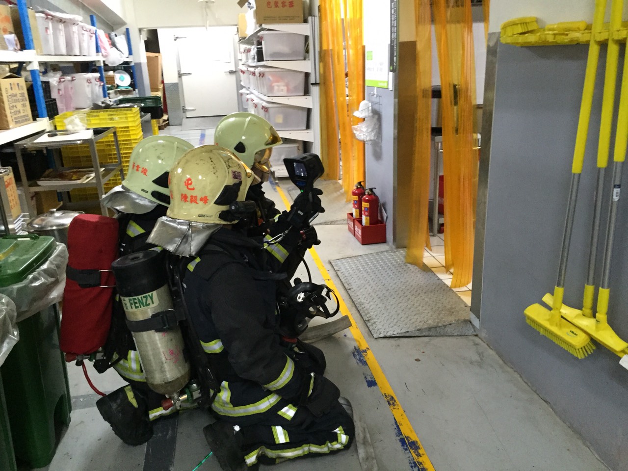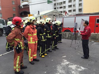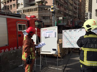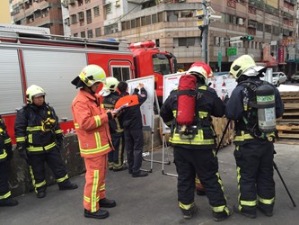 另,此次火點模擬為地下室起火,搶救人員使用熱影像儀進行搶救搜索,讓搜索區域更容易達到區域化、目標化,另針對消防安全檢查,對場所消防安全設備進行測試,同時檢查場所的逃生出口路線標示是否明確,強化場所災害緊急應變能量。