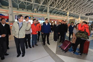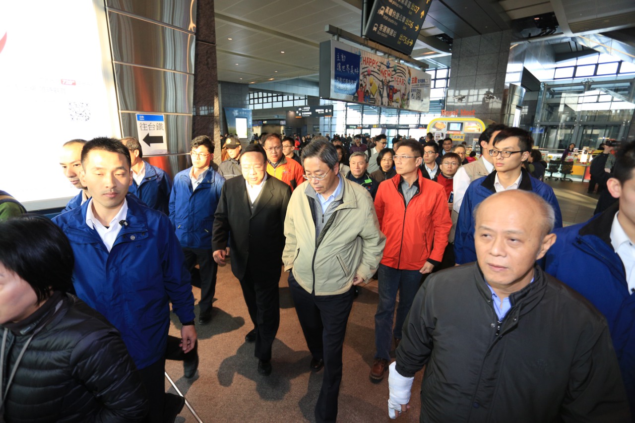 張院長與多位旅客寒喧,發現旅客們雖有無奈但並無憤怒情緒,他也請民眾稍稍忍耐、共體時艱。而張副市長則對交通局情商客運業者疏運高鐵站旅客的措施非常肯定。