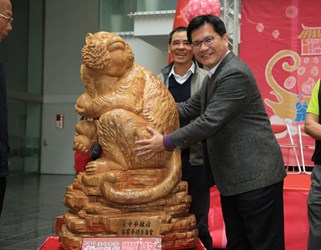 「2016台中東勢新丁粄節活動」記者會今(16)日於新市政大樓舉行,市長林佳龍在客委會主委劉宏基陪同下出席,除揭開猴年吉祥物「木雕猴」及「12響客家竹筒炮」外,並當場切開60斤新丁粄,分送給在場來賓品嘗,讓大家添福運。市議員劉士州及東勢區長池銀龍、石岡區長高文生皆出席共襄盛舉。