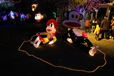 潘副市長表示,台中自1999年起每年舉辦元宵燈會,市長林佳龍上任後強調藝術下鄉、文化平權,因此,市府今年首度在海線設置燈區,並特別融合西方元素,獲大小朋友都喜歡的國際知名品牌「大嘴猴」授權,在清水及台中公園燈區展出大嘴猴花燈,藉由百變、搖滾、嬉遊的大嘴猴與他的朋友們,帶領民眾鬧元宵。