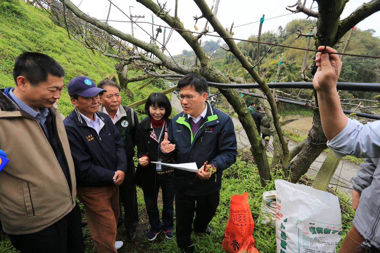 林市長表示,這一次過年前後的寒害造成許多農損,尤其是高接梨、桃子及巨峰葡萄,過去災損認定及補助都耗時很久,影響農民復耕期程;因此,他要求農業局配合農會,幫助農民加速認定農損。