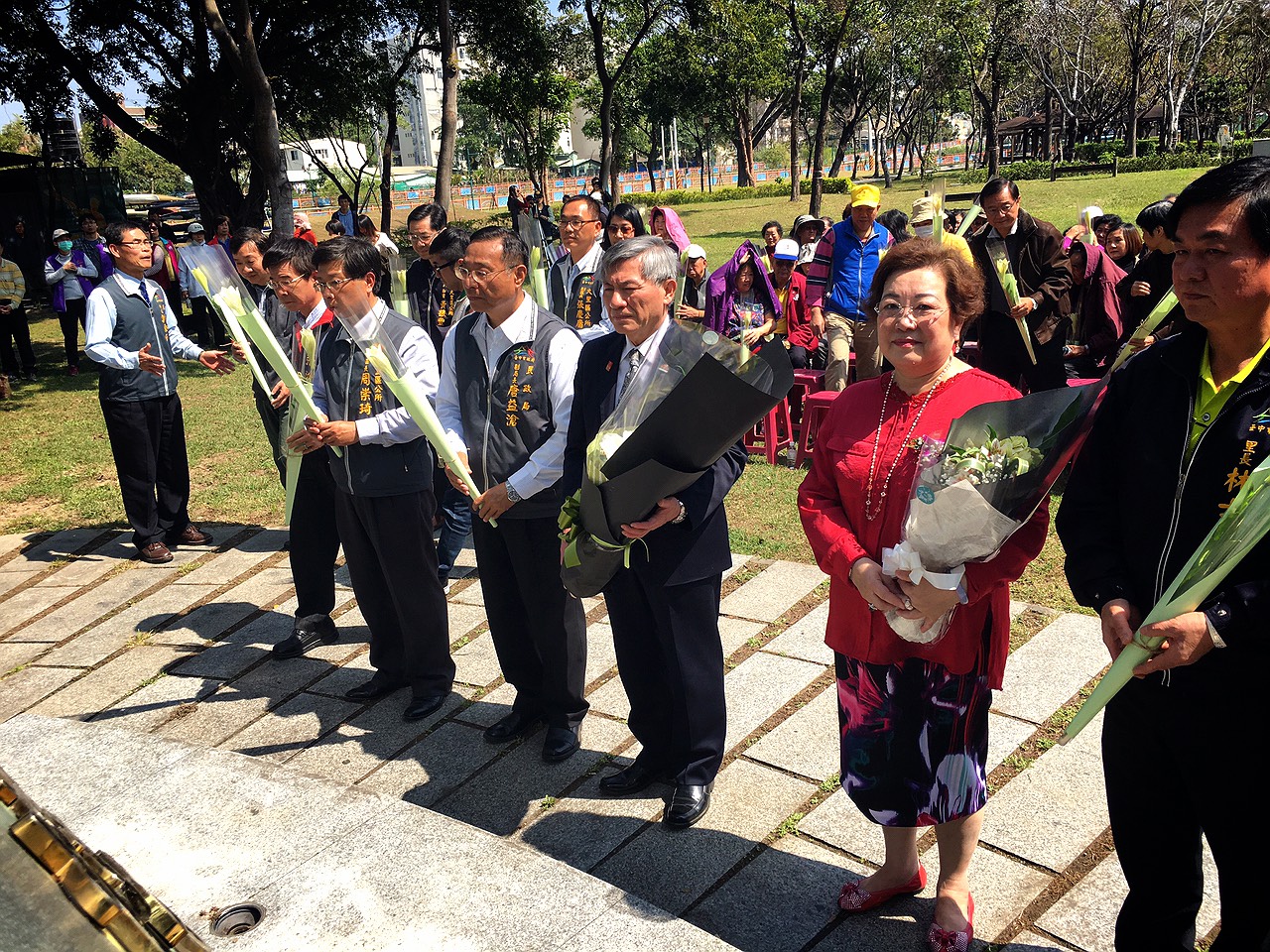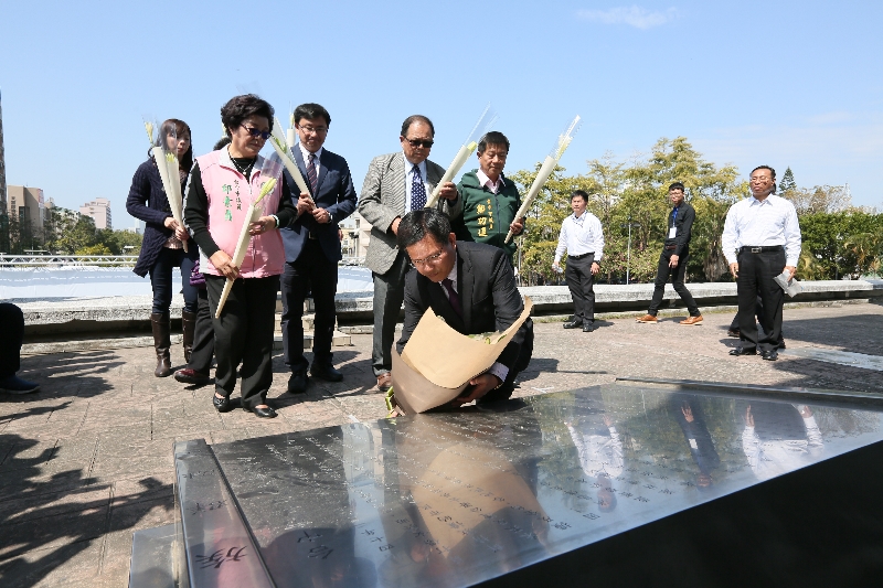 228事件滿69週年,台中市長林佳龍今(28)日前往東峰228紀念公園參與追思會,除向228紀念碑獻花、更在公園中種下象徵希望的樟樹。同時,在國光228紀念公園,則由副市長張光瑤代表市府向228紀念碑獻花,表達無限追思。