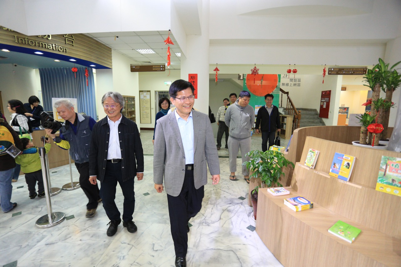 林市長說,台中市3月1日已成立台中市立圖書館總館,目前先以四張犁圖書館3樓及4樓作為總館辦公室,未來館設將結合美術館,預計2020年在水湳落成。目前透過總館辦公室管理43間分館業務,使市立公共圖書館的服務專業化與一致化。