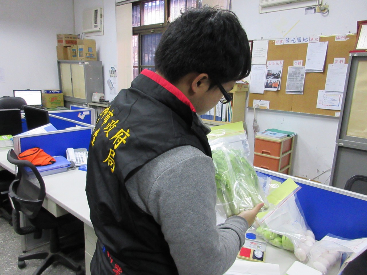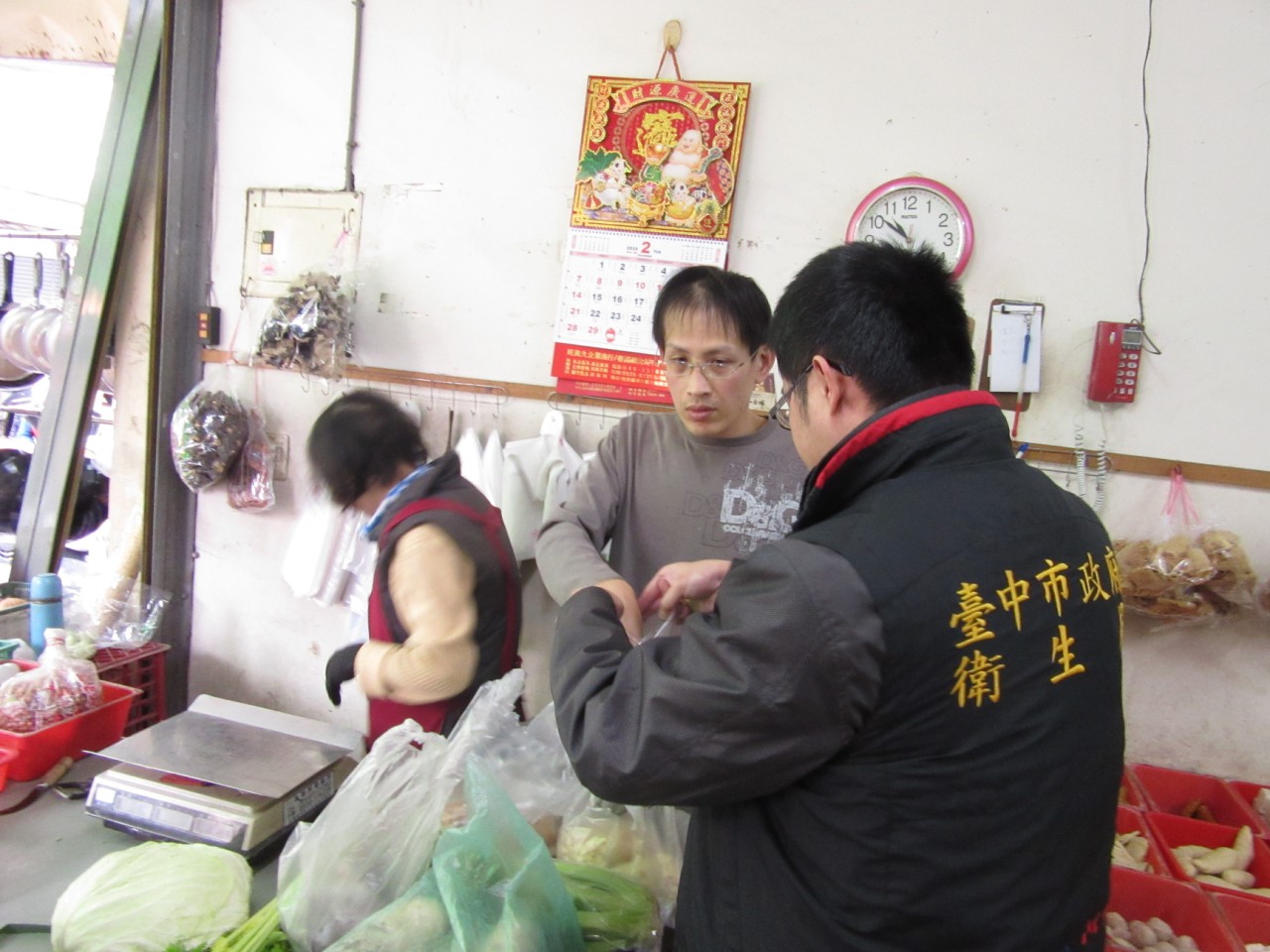 衛生局2月份派員至蔬果包裝廠及坪林、后里、成功、清泉崗等4處全市陸軍副食供應中心,抽驗蔬菜水果15件檢驗「農藥殘留」,檢驗結果共2件農藥殘留超標,分別為太平區坪林副供站的「小白菜」及「青江白菜」,檢出佈飛松(Profenophos)3.15ppm、1.21ppm(標準值<1.0ppm)。
