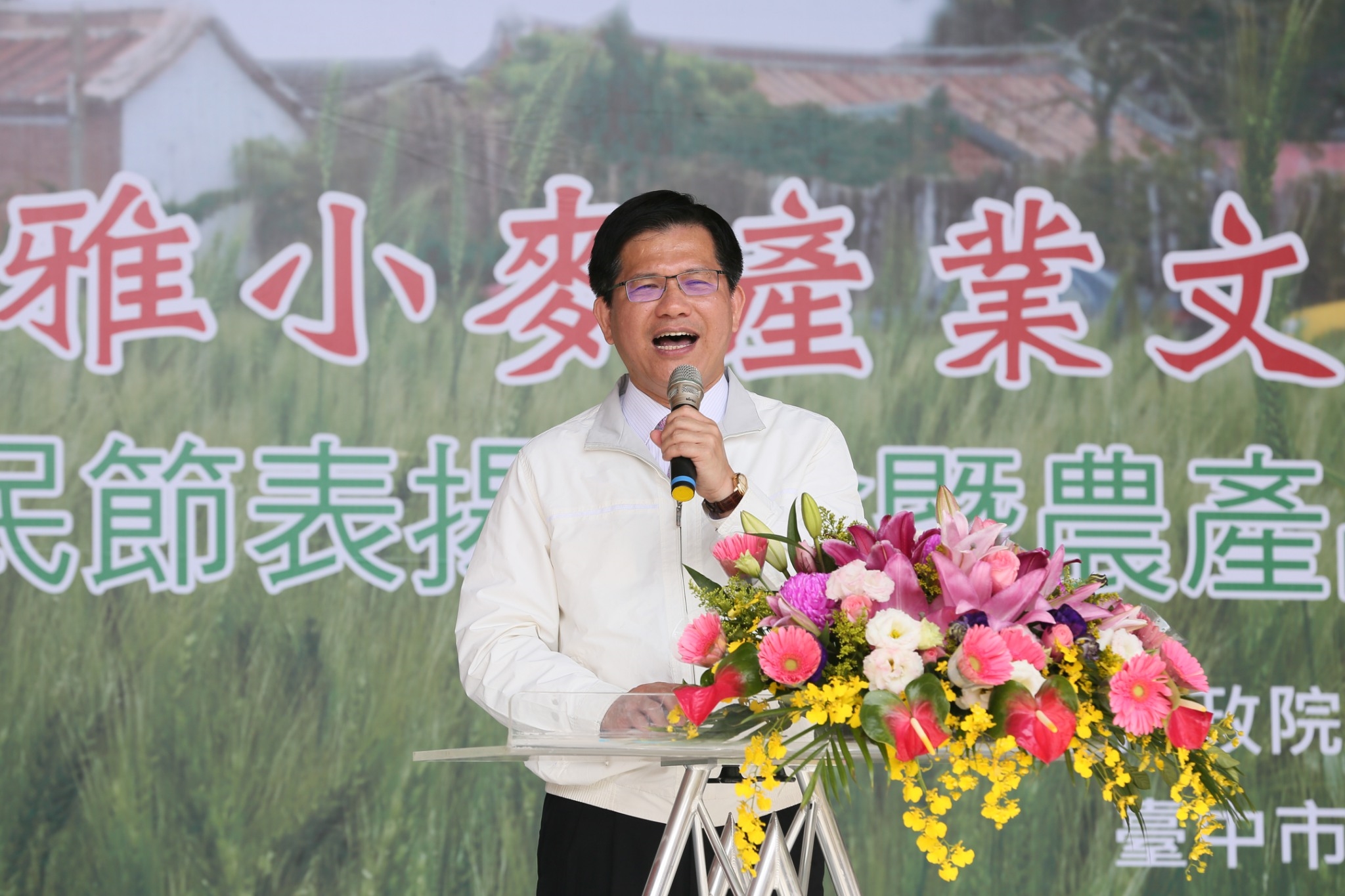 當天氣逐漸變熱,也是小麥逐漸成熟的時節,全台灣種植最多小麥的大雅區農田,也將逐漸成為一片片金黃,為讓更多人瞭解大雅的小麥文化,大雅區農會今日在大雅區寶興宮舉辦小麥文化活動「麥鄉嬉遊祭」,市長林佳龍、立法委員洪慈庸、市議員張立傑、洪金福、農業局長王俊雄、民政局長蔡世寅、區長李順彬都到場。