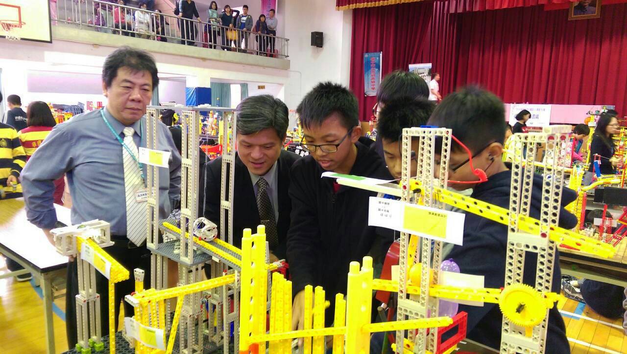 教育局彭局長頒獎恭賀獲獎團隊外,也對各校指導教師、在場陪伴家長表達感謝之意。他表示,科學教育的核心精神在於將所習得的知識,運用於生活經驗中,藉由動手實作的過程,培養問題解決的能力及創意思維,更重要的是從團隊合作完成任務的過程中學習溝通的技巧、尊重他人的態度與勇於嘗試和挑戰的精神。