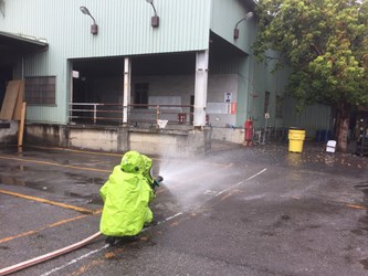 消防局長蕭煥章表示,期待訓練內容包括化學災害的基礎知識、化學防護裝備的介紹及災害現場操作訓練,期使同仁在面臨化學災害時,熟悉使用偵檢設備及個人防護裝備,以利消防人員救災時自我保護,消防局將持續辨理搶救演練,確保民眾與同仁自身的安全,加強消防人員的各項救災技能,提供人民生命財產更多的保障。(3/9*17)*消防局