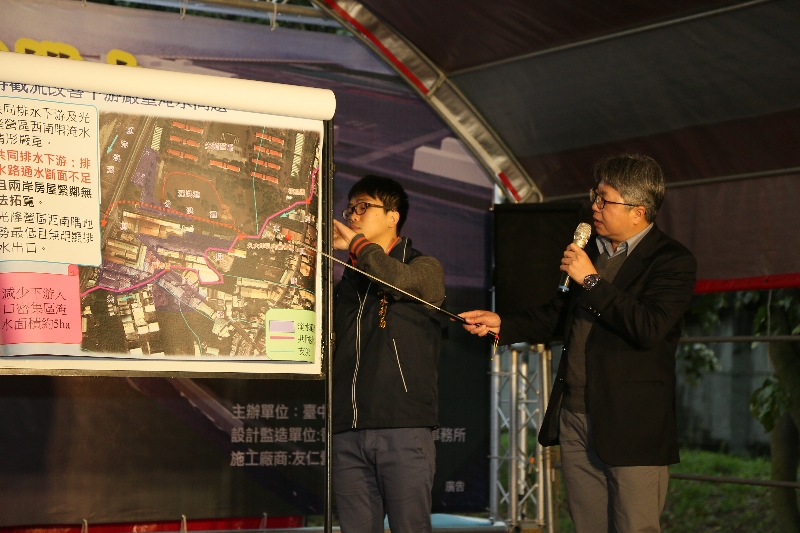 水利局周局長表示,滯洪池工程用地面積約1.9公頃,規劃滯洪量約47,500立方公尺,總工程經費約5,000萬元。經市府、地方民意代表與國防部積極協商,去年順利與軍方完成土地無償使用訂約程序,目前相關標案均已陸續順利決標,預計6月先完成分洪道等分洪設施,因應颱風季來臨,預計今年底整體工程可完工。