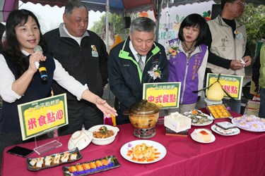 張副市長一連品嚐新鮮枇杷、枇杷酥、枇杷糕點及枇杷米食等創意料理,連連直呼好吃,並表示將納為2018世界花卉博覽會特產,共同行銷。