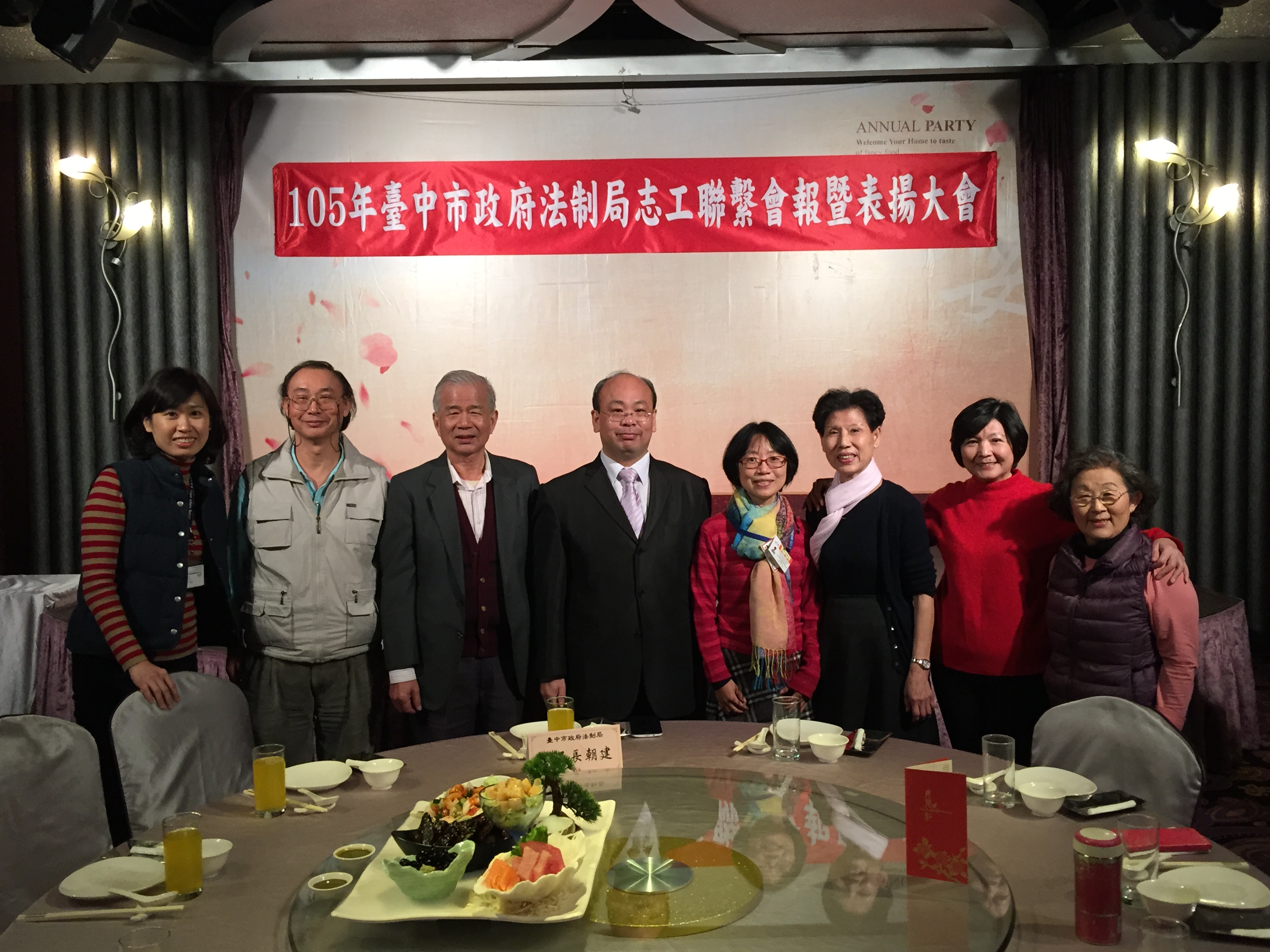 台中市政府法制局昨(15)日舉辦志工聯繫及表揚大會,近百位消費者保護志工及法律扶助志工參加,局長陳朝建感謝每位志工的付出與貢獻,協助市府推動各項法制業務,其中更有20人擔任志工時間長達12年之久,服務熱忱及毅力令人感佩。