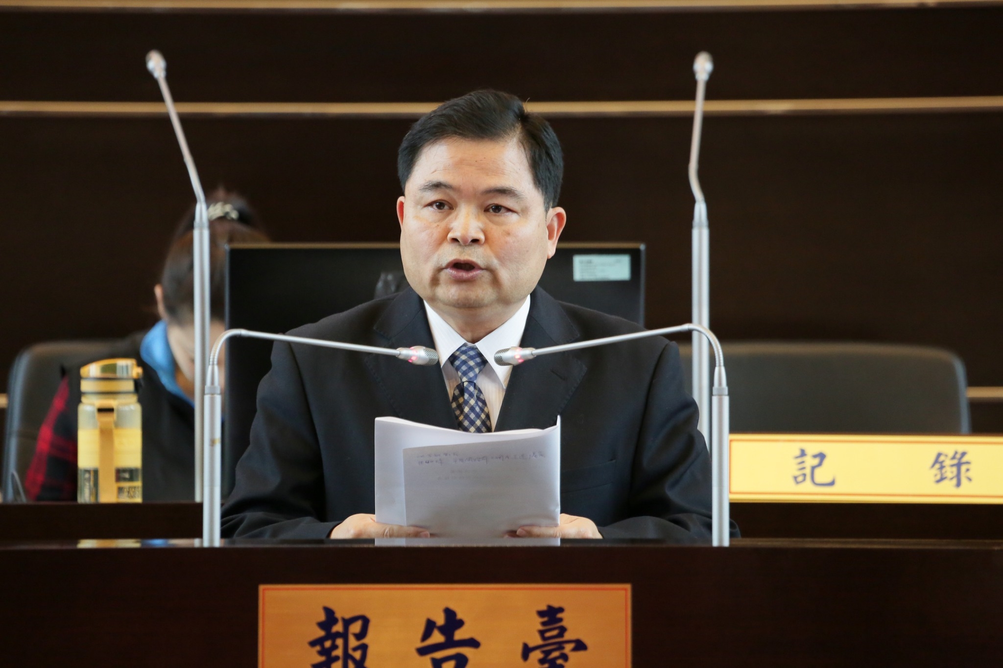 台中市議會今日召開第二屆第五次臨時會,市府主計處長蔣建中、財政局長林顯傾針對今年度第一次追加減預算的編製情形提出報告。