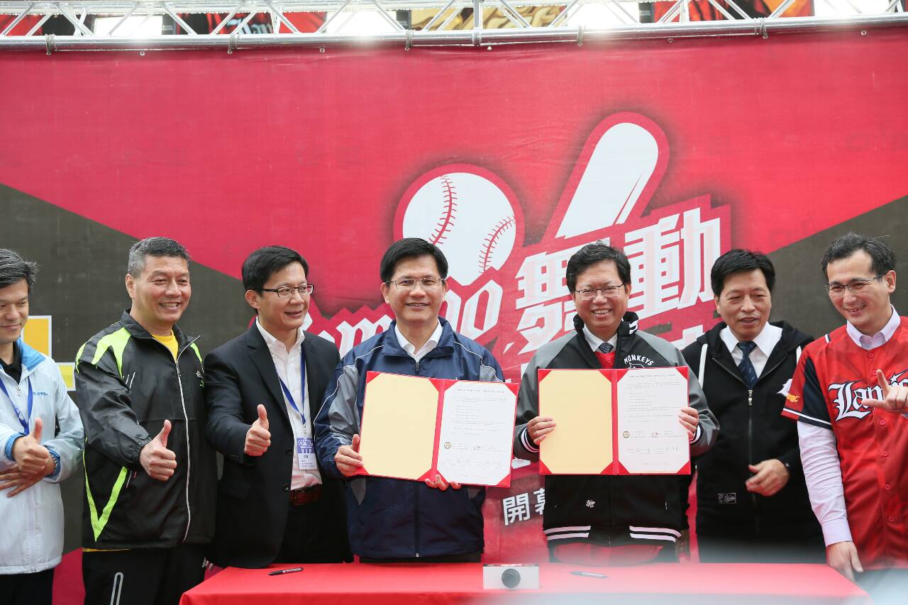 去年中華職棒總冠軍戰,林市長與鄭市長約定,代表台中主場的中信兄弟及桃園主場的Lamigo桃猿隊,誰主場球隊輸了,下一季就穿著對方球衣看球,目的在於喚起場內外市民對在地職棒球隊的認同感及歸屬感。