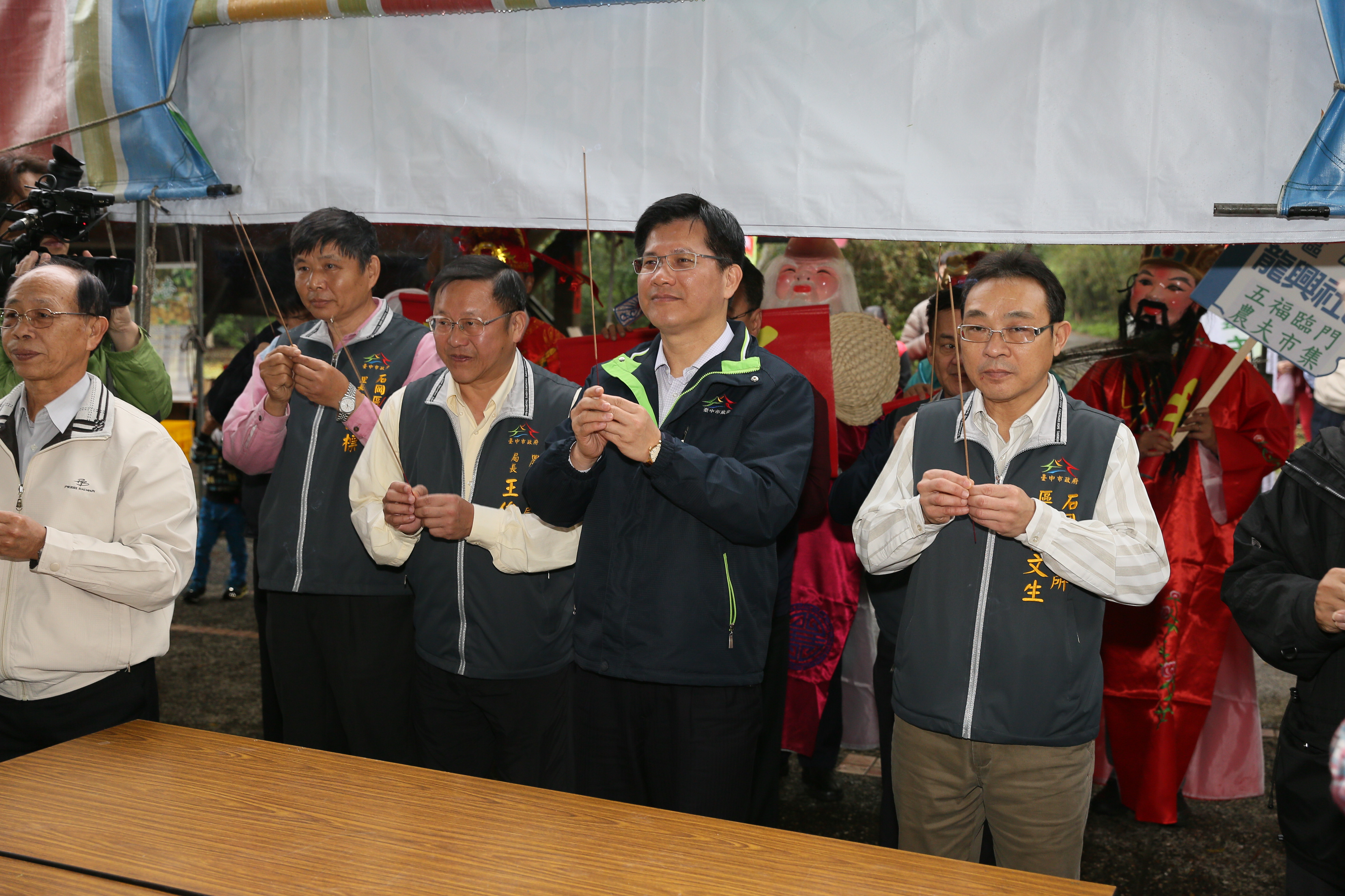 今日五福臨門農夫市集舉行開幕活動,由林市長與農業局長王俊雄、石岡區長高文生等人共同剪綵,並至五福神木公廟上香祈福,寫下祈願卡片,懸掛在廟前,保祐當地虔誠市民。