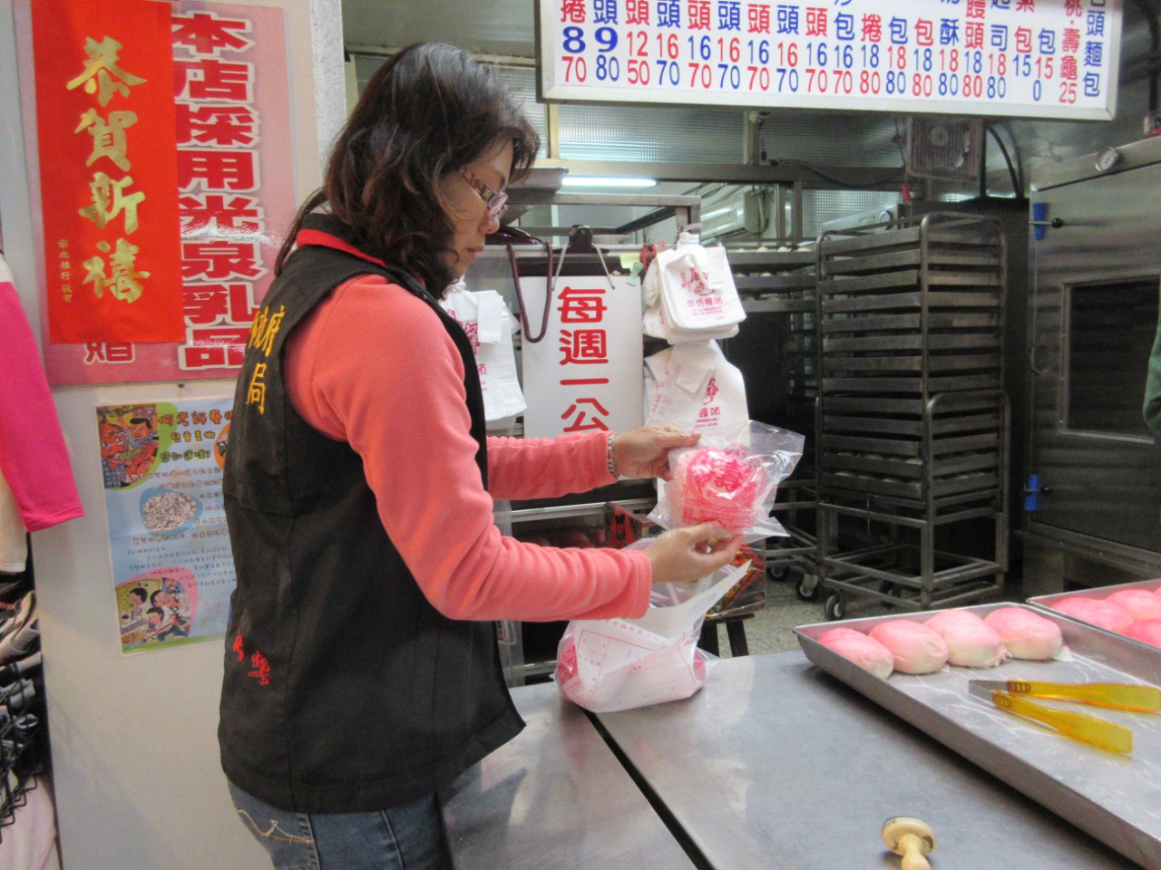 這次2件違規產品,分別為沙鹿區何信賢攤商自製的紅龜粿檢出去水醋酸0.06g/kg及南區慶峯鮮奶饅頭自製的壽桃-紅豆檢出去水醋酸0.05g/kg,與標準不得驗出的規定不符。