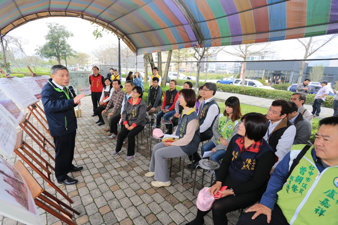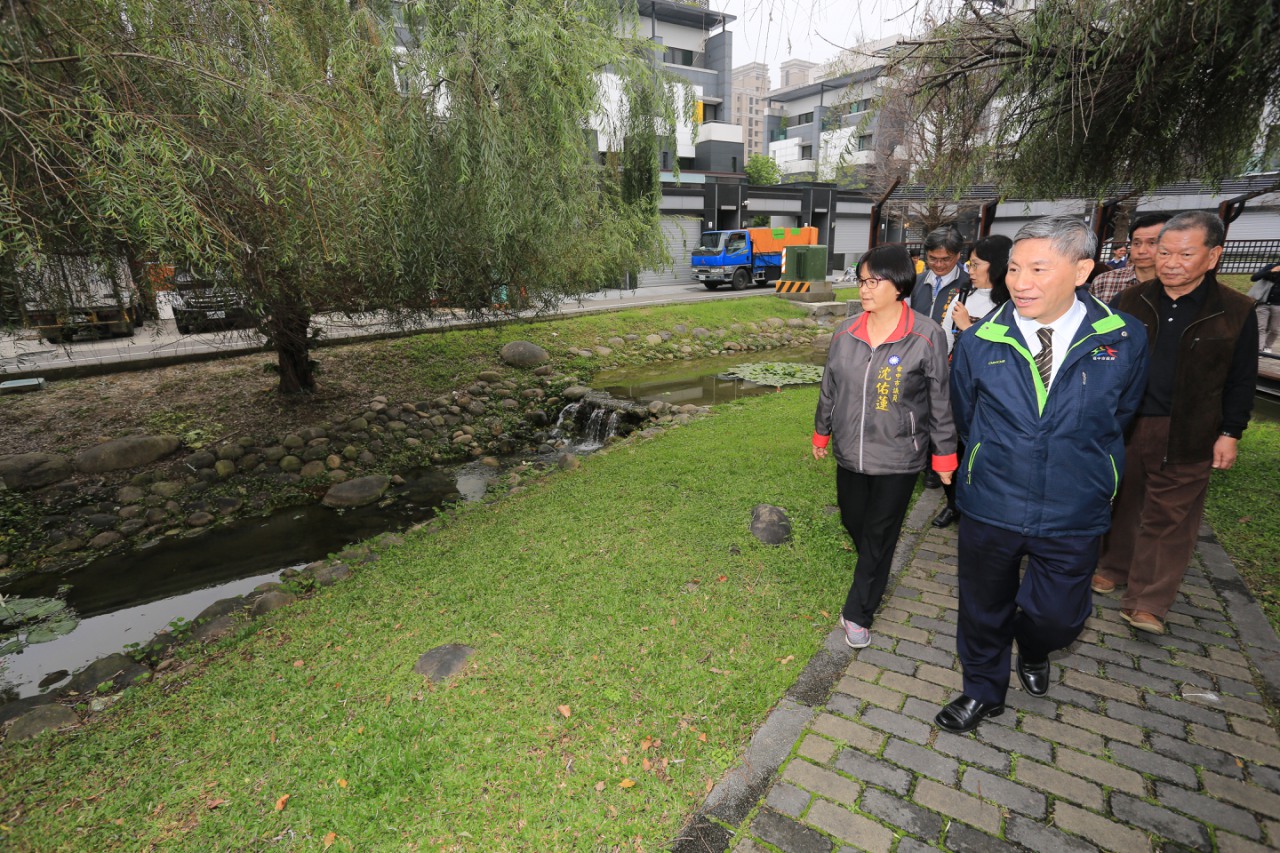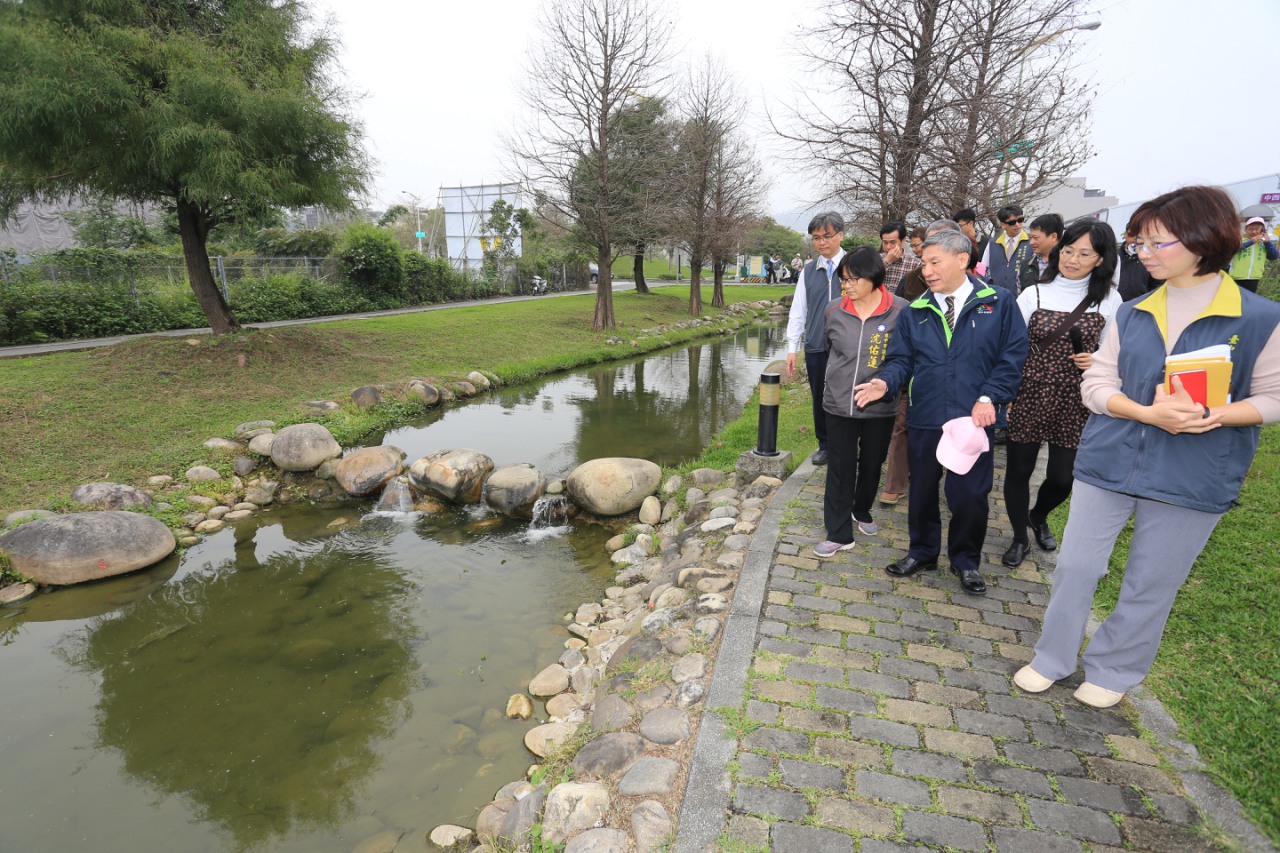 張副市長今日在地政局長張治祥陪同下,與市議員沈佑蓮、自辦市地重劃會理事長湯明厚等人,前往視察整體園區與特殊生態設計工法。在聽取建築景觀設計師簡報後,張副市長親自遊覽公園一圈,甚至踏入親水步道賞魚,直呼:「魚群既多又漂亮。」頻頻稱羨當地居民。