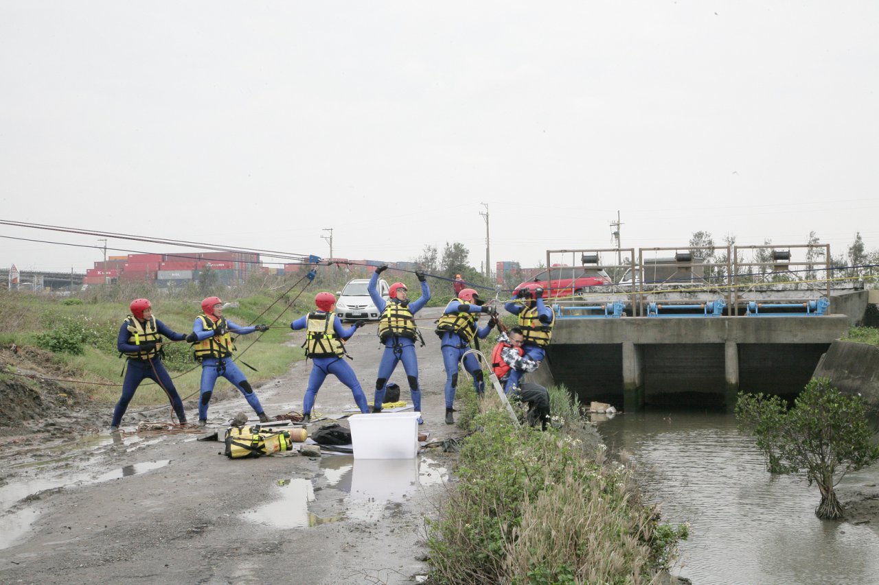 此次演習時間共50分鐘,以清水區低窪易淹水處為實際演習地點,模擬人員受困於暴漲溪水、小客車墬落溝渠等情境,以省力的T型拖拉泰洛林系統方式模擬救援,並由消防人員模擬真實情境,擊破溺水車窗將受困者救出。