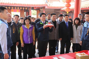 考生祈福活動是磺溪書院的年度盛會,林市長、立委顏寬恒、市議員林汝洲與大肚區長王淑貞今日一同為考生祈福,在林市長的率領下,向磺溪書院五文昌帝君敬獻「包高中(蔥燒包、狀元糕、粽子)禮」,向文昌帝君祈願,並一同點亮狀元燈。