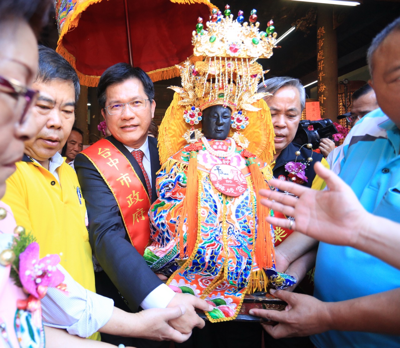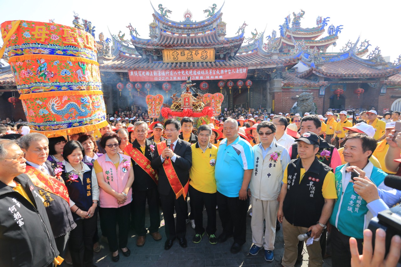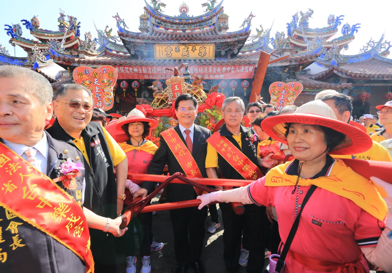 林市長表示,旱溪媽祖遶境活動是台中的無形文化資產,媽祖是大家的母親,祈求媽祖保佑每個人都能逢凶化吉、平安順利,也祝福這次的遶境活動成功順利。