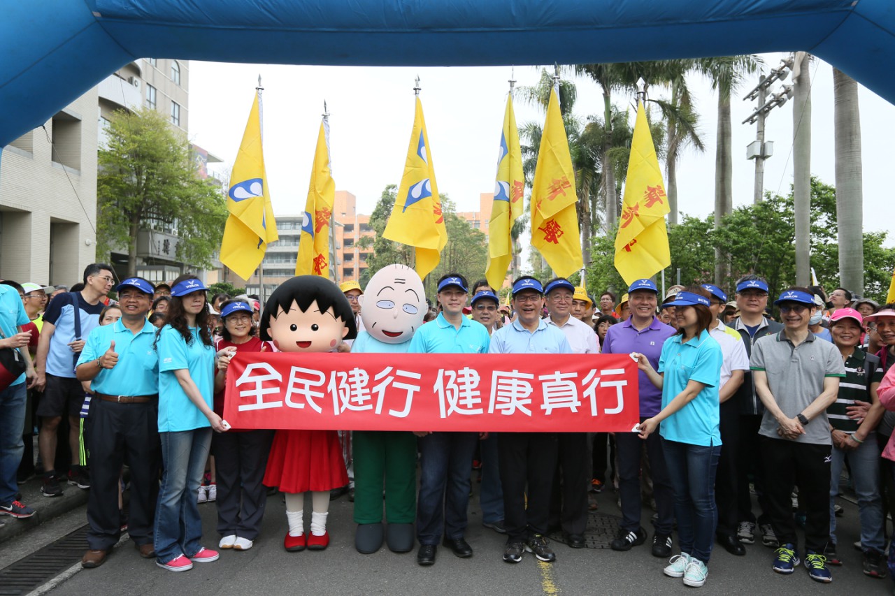 今日的健行活動吸引超過一萬名熱情群眾參加,更邀請「櫻桃小丸子」與爺爺和大家同樂,兩人不僅在舞台上帶著大家一起唱唱跳跳,現場更開放民眾和可愛的玩偶互動拍照,氣氛相當熱鬧。
