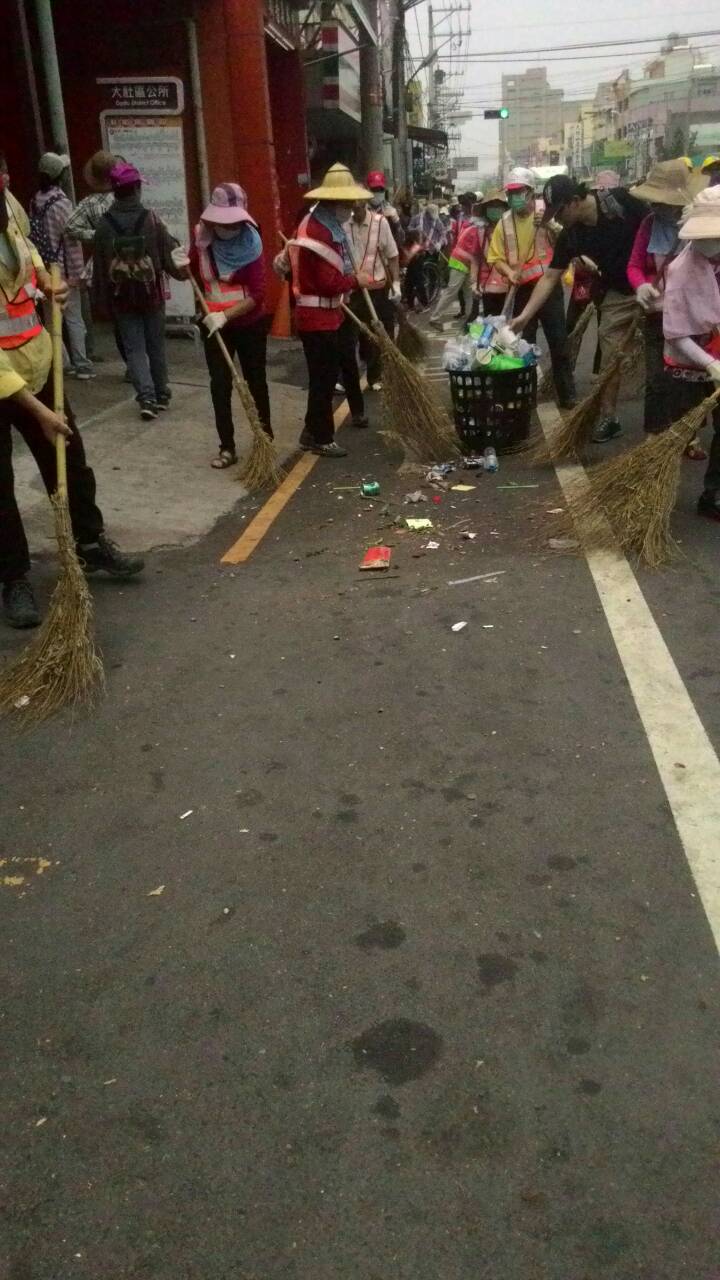 今年大甲媽祖遶境活動,環保局出動約3,000多名環保志工與百餘位清潔隊員協助掃街,截至昨日共清除垃圾約21.98公噸及資源回收5.12公噸。