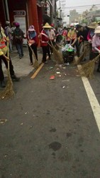 沙鹿區龍崗里志工張小姐表示,該里志工隊已成立10多年,她的公公是前志工隊長,相當熱心公益,每年必參加媽祖遶境掃街,由於公公年事已高,現交棒給她帶隊,志工隊約有20多位成員,包括各業界退休人員、家庭主婦及上班族等,共同為環保盡心力。