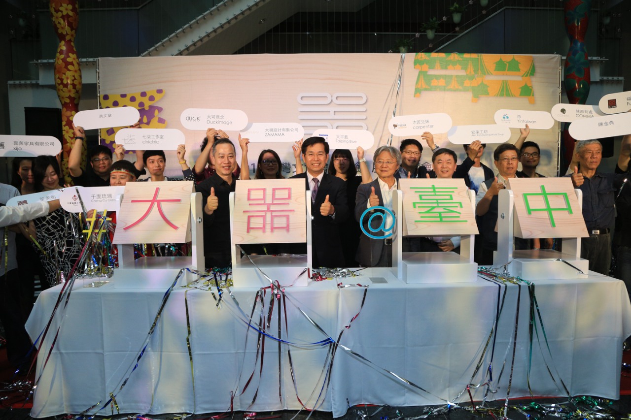 副市長潘文忠、文化局長王志誠、大里區長周崇琦、策展人陳永基及台中主題館各參展單位代表均出席記者會,一同進行啟動儀式,正式宣告2016台灣文博會台中主題館「大器登場」。