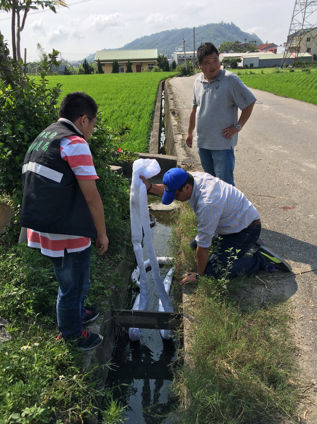 環保局獲報後第一時間即於溝渠及農田鋪放吸油棉片及攔油索,防止污染範圍擴大;並與警察局、台中地檢署成立檢警環查緝環保犯罪聯合小組,積極調閱案發現場周遭監視器,發現陳姓嫌犯駕駛槽車於案發時行經該處,並由環保局配合查證為非法清運機具,聯合小組循線查獲嫌犯涉於前日非法傾倒事業廢液。