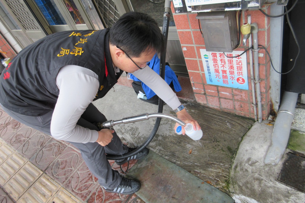 衛生局派員前往各宮廟,包括東區樂成宮、潭子區潭水亭、大甲城隍廟、豐原慈濟宮、西屯開漳聖王廟、北屯松竹寺、北區台中市北台中城隍廟、南屯區犁頭店福德廟等,抽驗廟宇提供信眾市民於進香活動或廟內參拜飲用的瓶裝水,以及坊間常見的自助加水站水質。