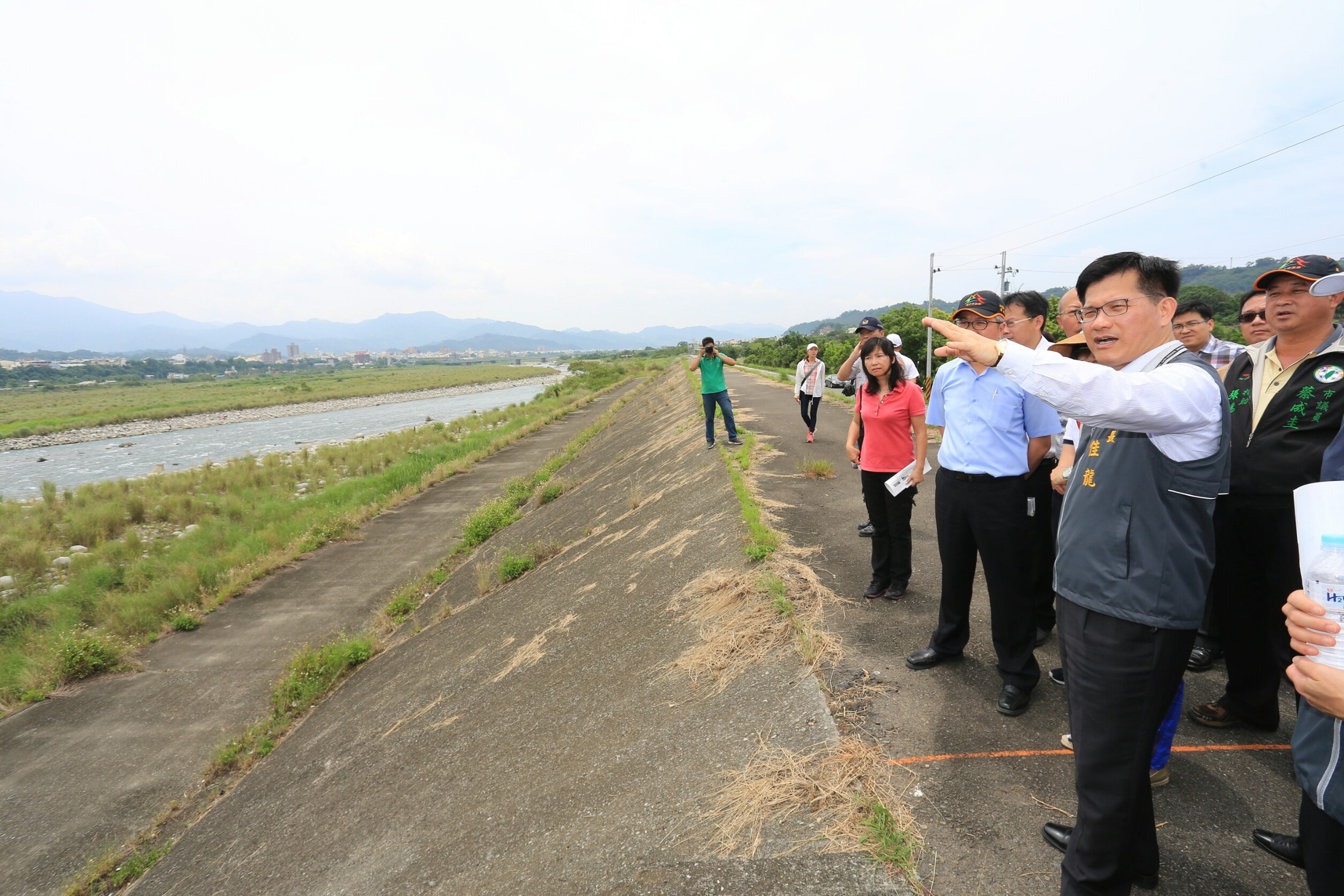 林市長今(14)日在教育局長彭富源、水利局長周廷彰、體育處長郭明洲等人的陪同下,前往了解輕艇運動基地現地使用及規劃情形,台中市輕艇協會理事長林婉如、台中市體育總會輕艇委員會主委李榮溫、客委會主任劉宏基、石岡區長高文生及多位當地里長等人均到場關心。