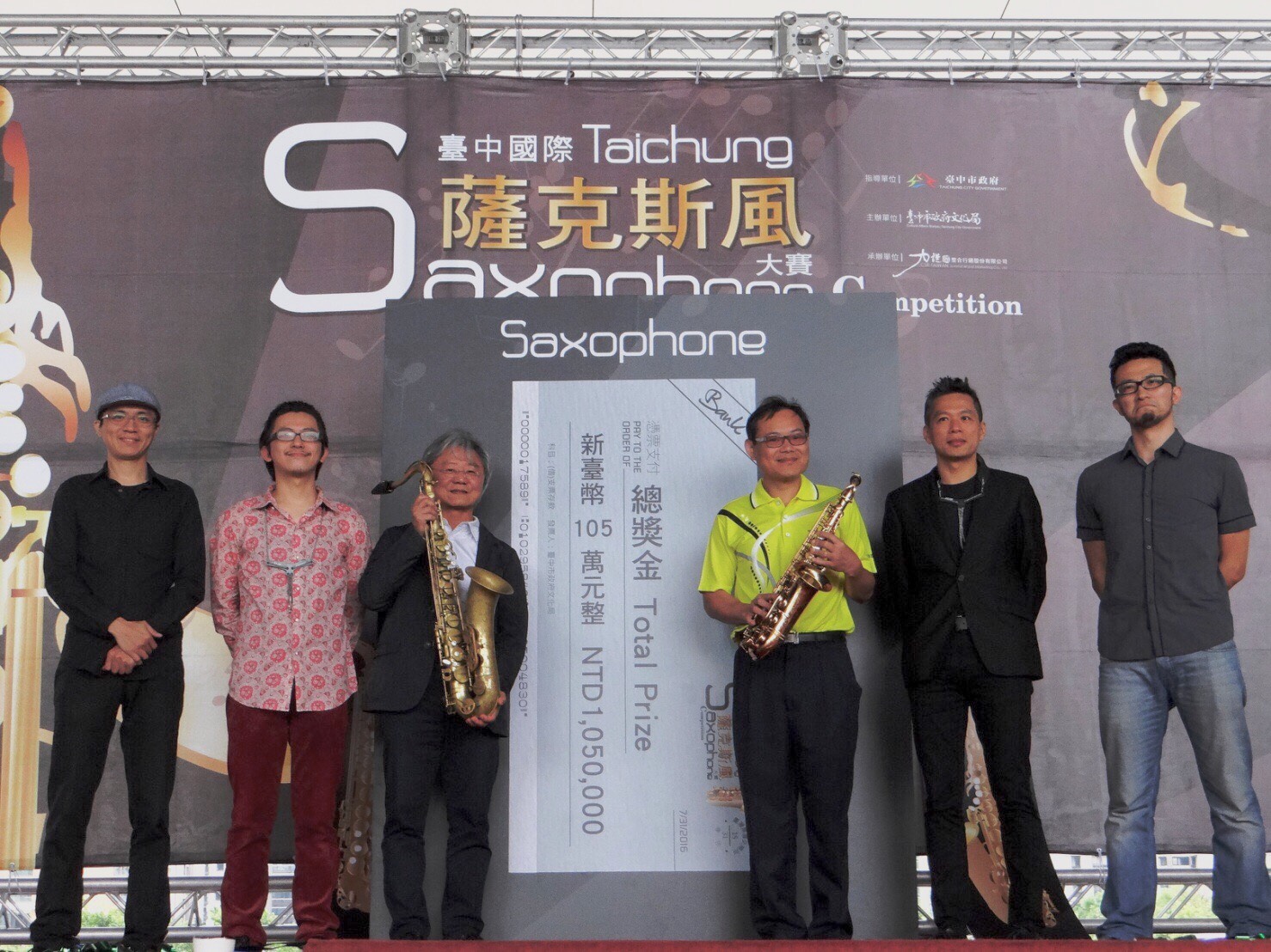 「2016台中國際薩克斯風大賽」將於7月29日及31日在新民高中藝術中心登場,總獎金105萬元,第一名獎金高達60萬。評選將分三階段進行,每位參賽者事先錄製演奏影片,交由專業評審委員評比後,選定20位參賽者進入複賽。複賽及決賽將於7月29及31日在新民高中藝術中心登場,邀請五位國際級大師擔任評審,評選新一屆薩克斯風大師。
