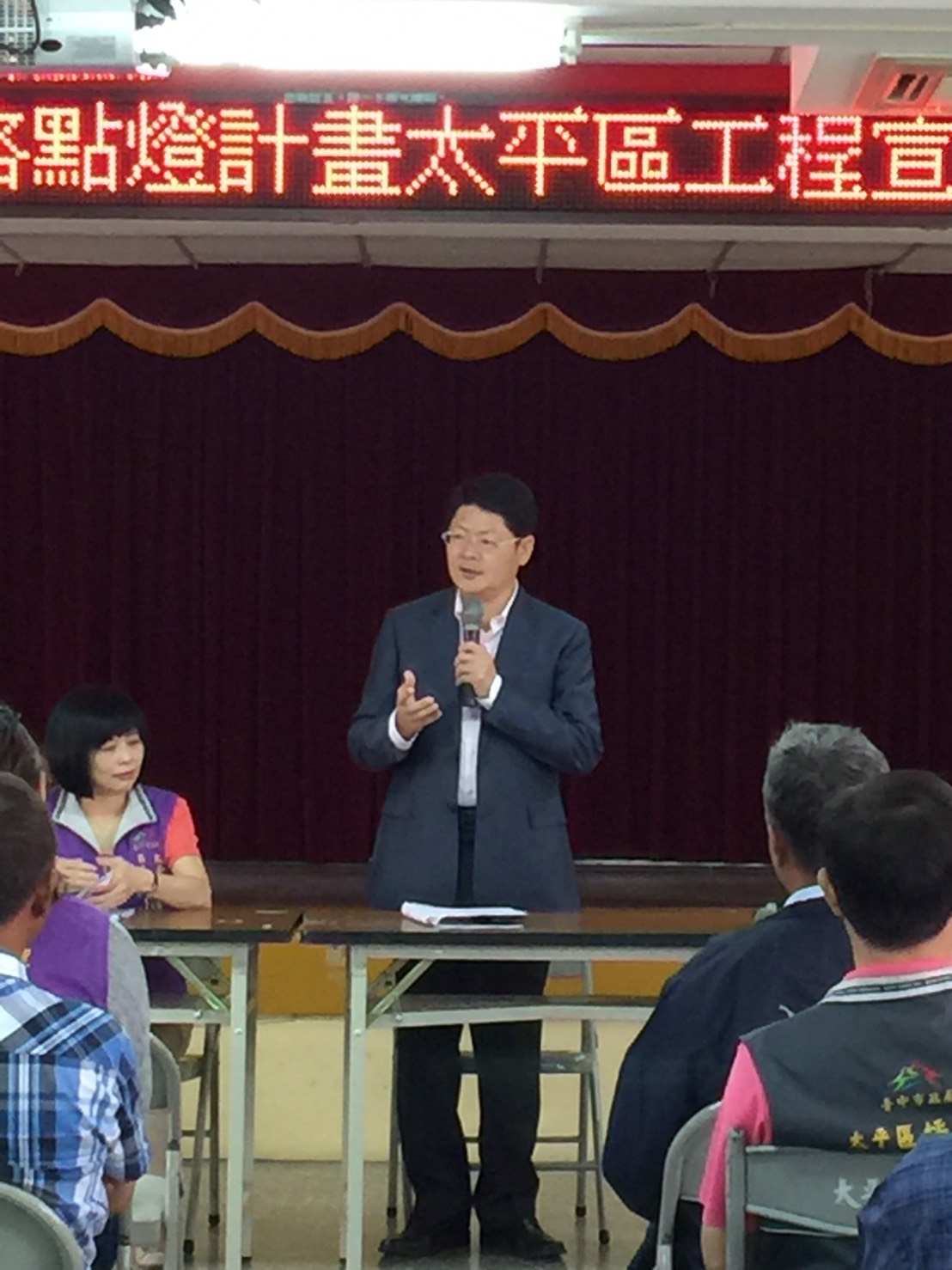 為說明「山區農路點燈計畫」,建設局長黃玉霖日前率隊前往太平區舉辦首場地方說明會,包括太平區長陳小菲、當地里長、居民及地方代表熱烈參與,希望讓地方更瞭解偏鄉點燈計畫推動方向,市府也同時聽取地方意見,更貼近市民需求。
