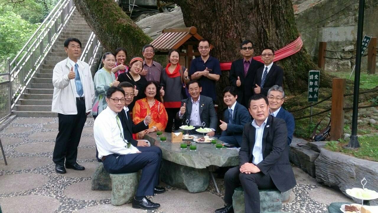 此次由青森縣平川市長長尾忠行率領溫泉業者齋藤寬倫、青森縣觀光國際戰略局副參事中村崇、課長相馬昌幸、主幹川嶋和代及南田溫泉飯店負責人古川哲等人,赴台中市谷關溫泉區交流,市府觀光旅遊局主任秘書莊右孟則偕同台中市溫泉觀光協會理事長羅進洲、谷關社區發展協會總幹事尹敬倫與10多家谷關業者代表,以及溫泉專家楊麗芳、王喆副等人到場接待交流。雙方在谷關千年五葉松樹下,品嚐當地特產五葉松汁,分享溫泉觀光產業行銷推廣與經營管理等寶貴經驗,為雙方未來溫泉觀光交流揭開序幕。
