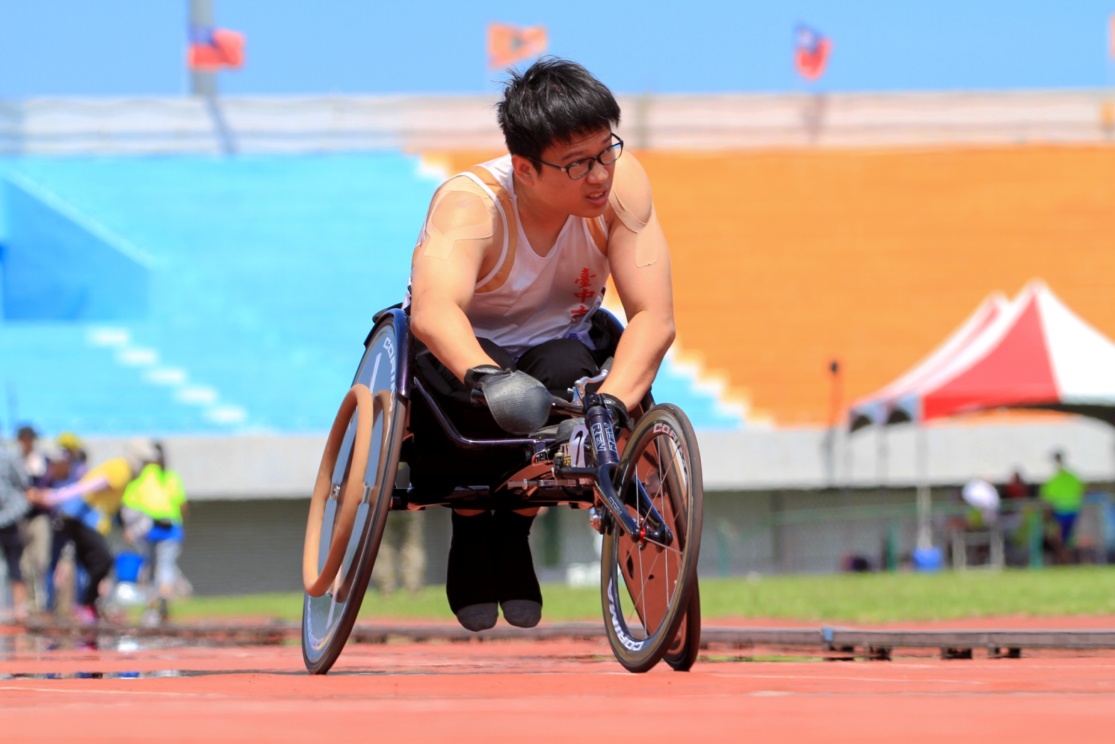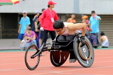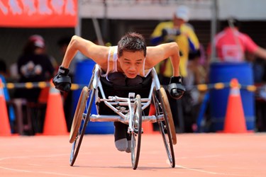 田徑項目選手林建宏10年前頸椎脊髓損傷,為了挑戰並鍛鍊自己,加入田徑訓練的行列。訓練初期因頸椎損傷無法調節體溫,每每練習都出現中暑症狀,一直無法明顯進步。