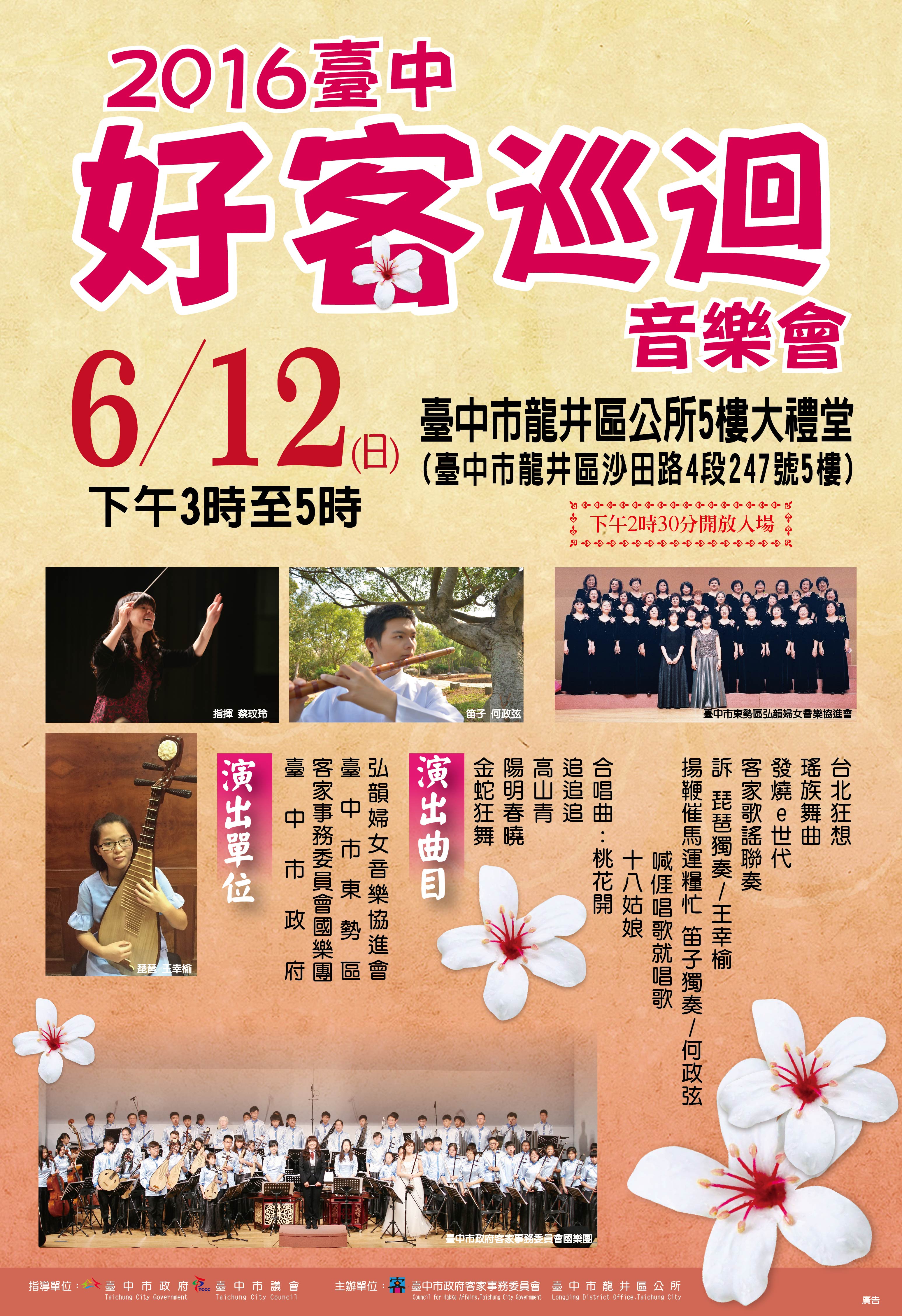 1.2016台中好客巡迴音樂會將於6月12日登場,現場將送出具客家特色的宣導品!