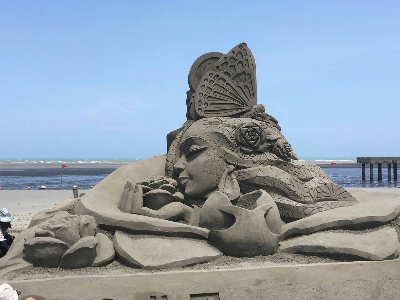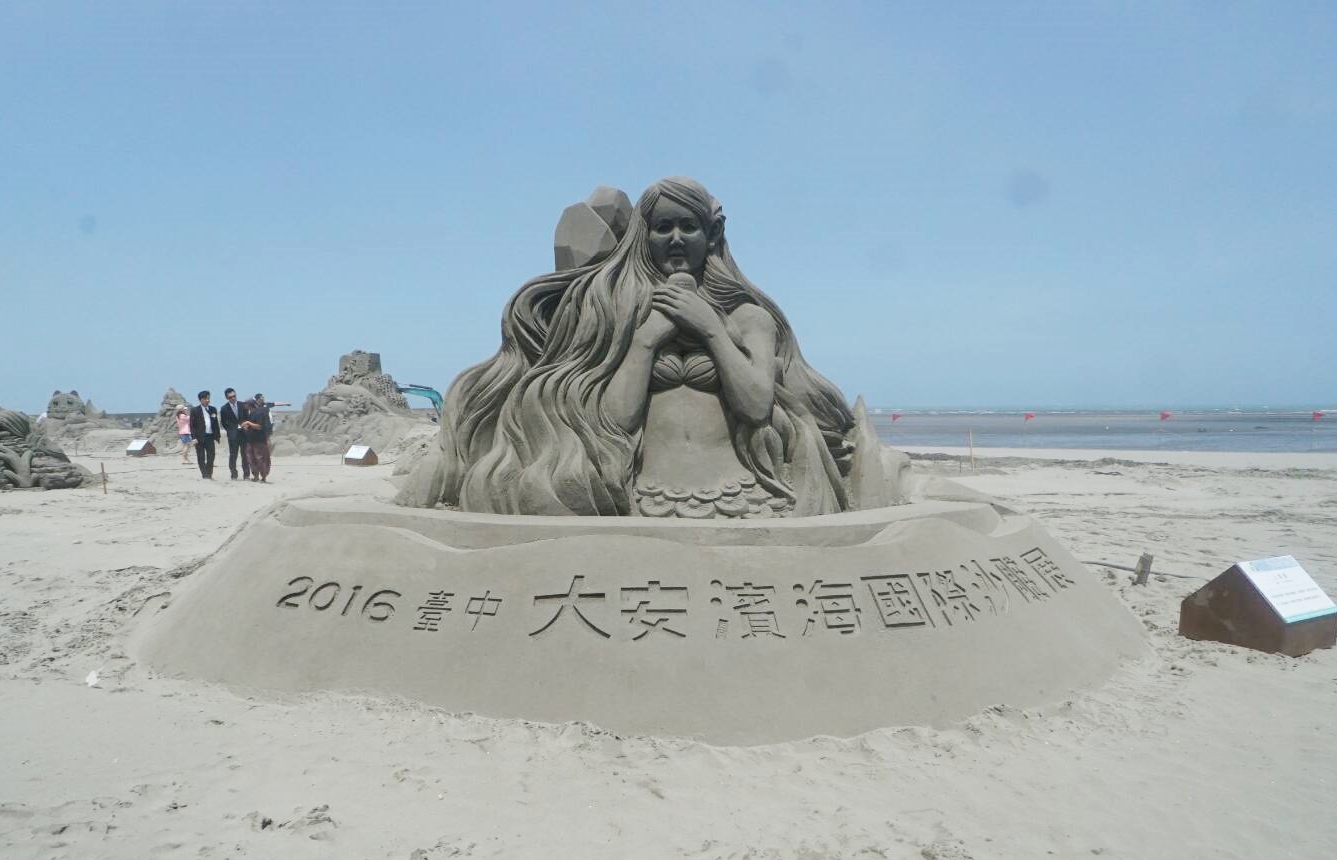 日本女沙雕師松木由子創作的大型沙雕作品「人魚姬」長、寬、高約5×5×3公尺。松木由子說,人魚姬是各國人民都認識且喜愛的角色,希望這個作品能立即與參觀者產生共鳴。她也說,日本的沙質比較起來,大安的沙較日本的細緻,在創作上感覺不太一樣,是個特別的體驗。