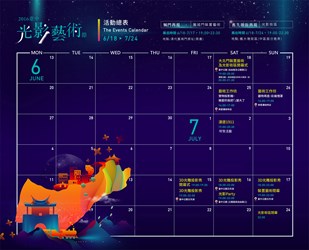 已為台中指標性活動的光影藝術節邁入第4年,今年配合中區再生城中城計畫,規劃在台中公園及中區街道舉行;除了光影,還有導覽活動帶領大家實地踏訪記憶中的巷弄,尋找台中文化城歷史情感。從6月18日至7月17日每晚7點至10點30分有「舊城門裝置藝術展」,在8處清代舊城門原址及台中公園望月亭展出;而自18日起至7月24日每晚7點至10點30分,民眾可夜遊曾是清代最熱鬧的舊大墩街「舊大墩光影街區」,感受台中過往生活。