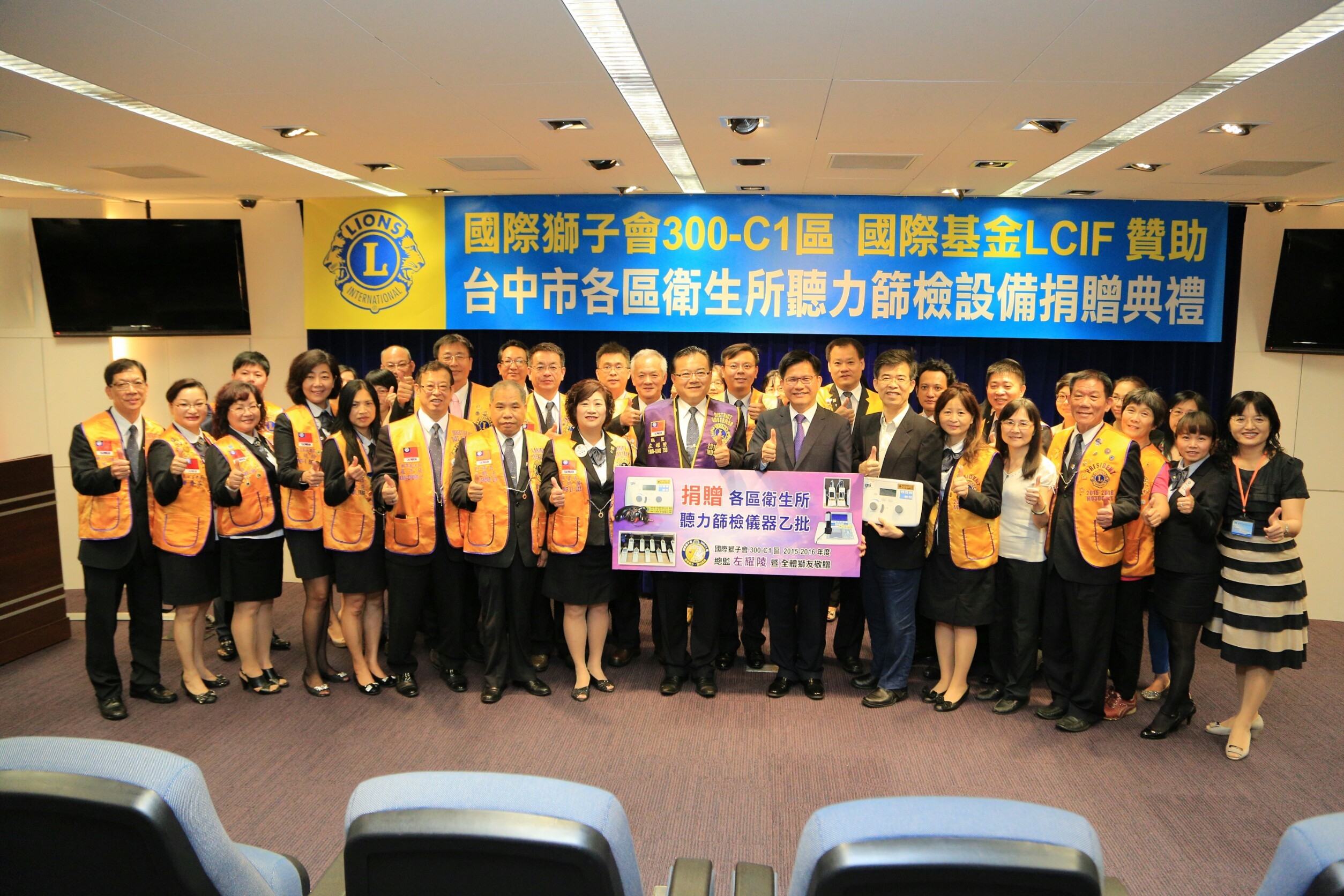 國際獅子會300-C1區關心孩童,104年捐贈台中市13區衛生所價值達300萬的視力檢查儀器,今年再次捐贈28組聽力儀器及噪音計,將分配備台中市25區衛生所,有助提升學齡前兒童聽力篩檢的工作效能。