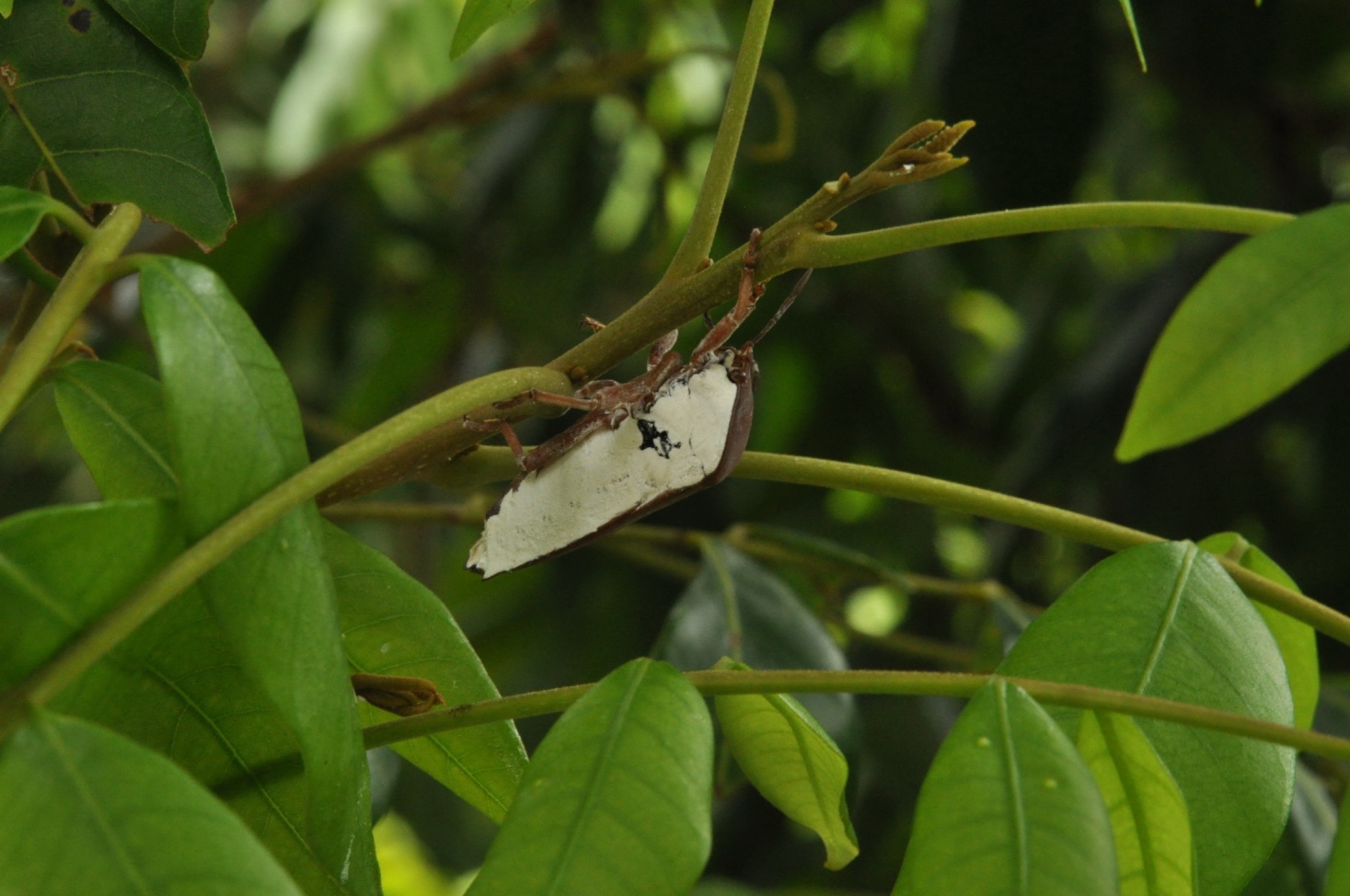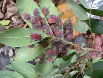 荔枝椿象大多集中在荔枝及龍眼樹上,幼期蟲體顏色紅艷具白色條紋,成蟲體色黃呈褐盾狀,以刺吸式口器吸食汁液,會導致落花、落果及嫩枝枯萎。